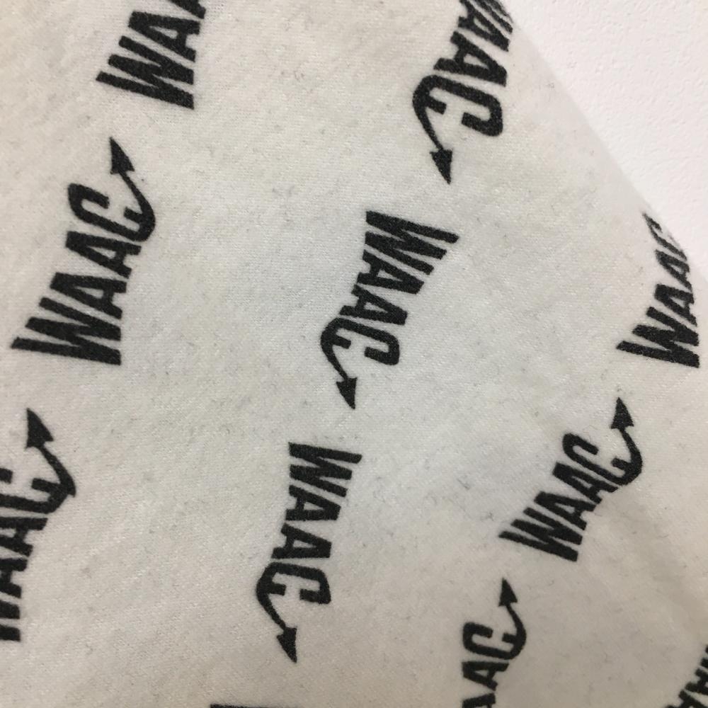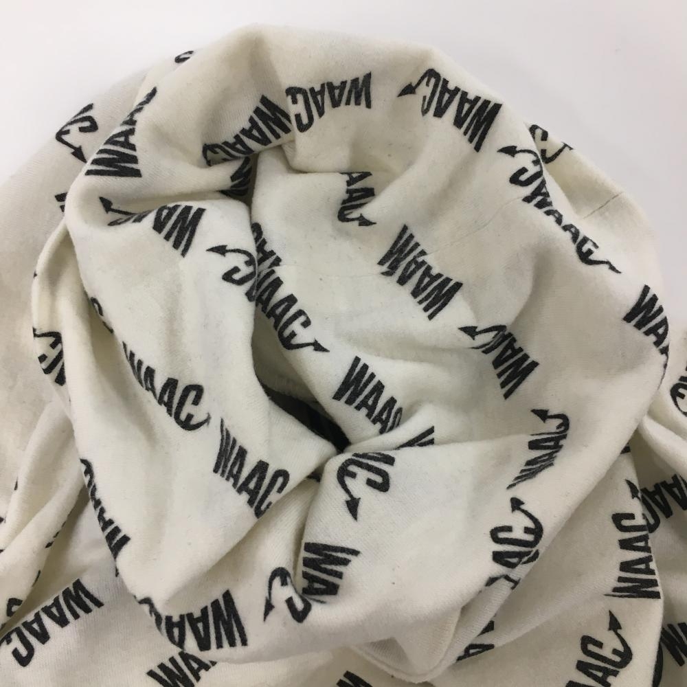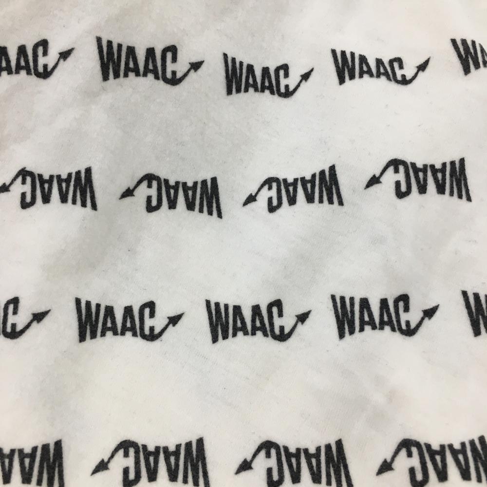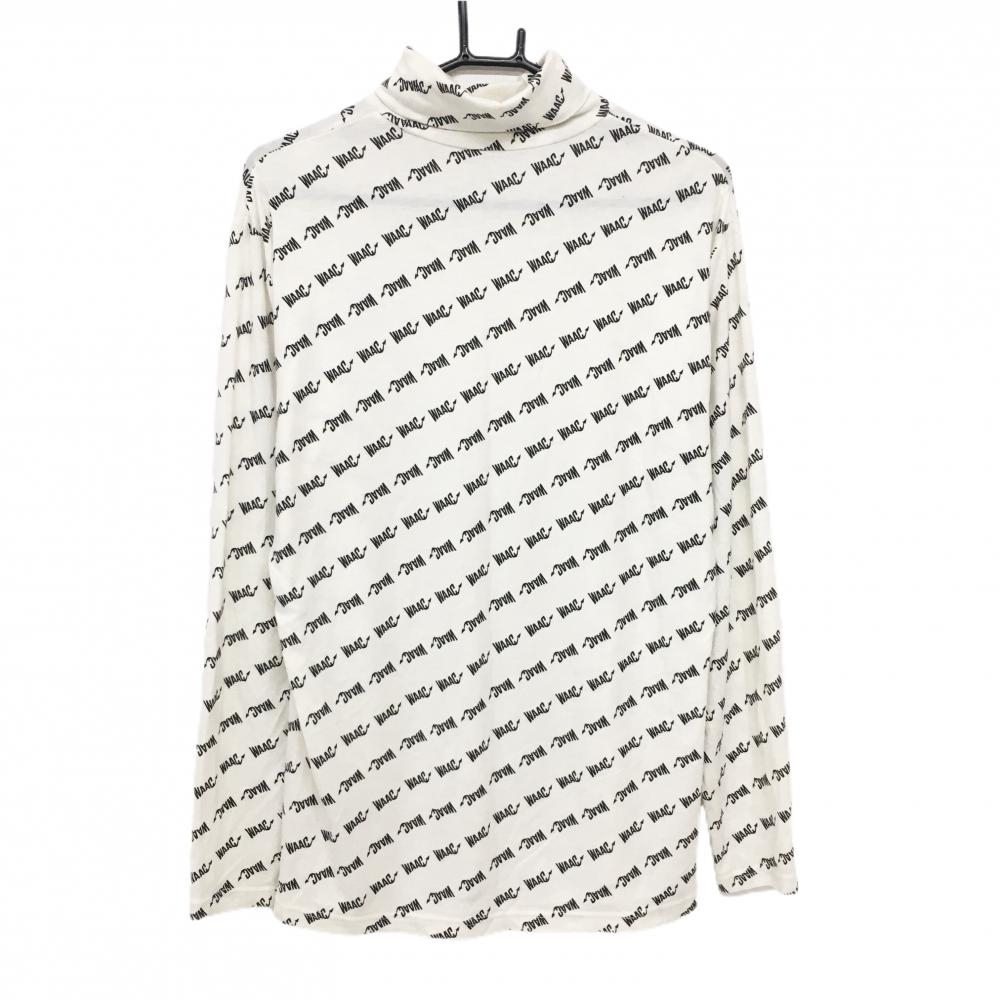 【美品】ワック 長袖ハイネックシャツ 白×黒 ロゴ総柄 表微起毛 アクリル混 繊維付着 メンズ 2(M) ゴルフウェア WAAC