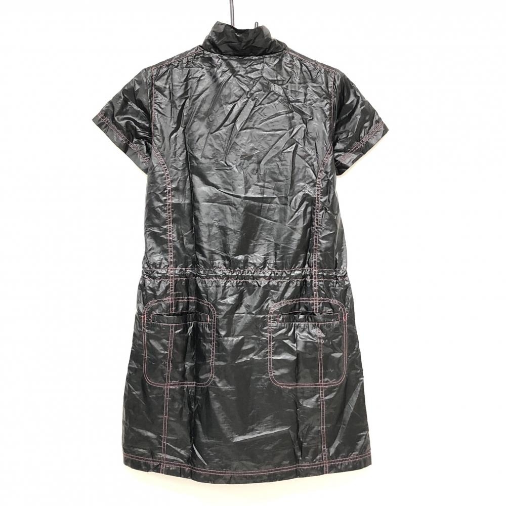 【美品】ティゴラ 半袖ハイネックワンピース 黒×ピンク ハーフジップ ウエストドローコード レディース L ゴルフウェア TIGORA