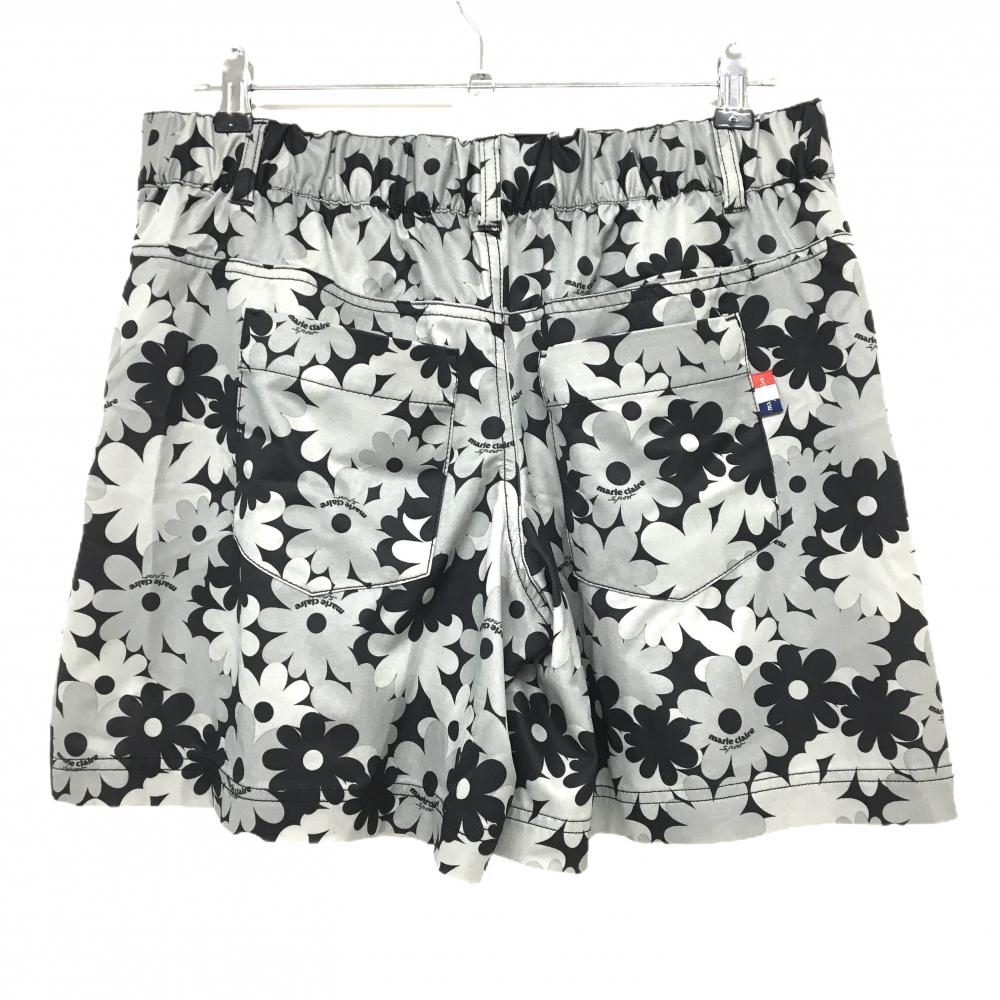 【美品】マリクレールスポール キュロットスカート 黒×グレー 花柄 ストレッチ レディース LL ゴルフウェア marie claire