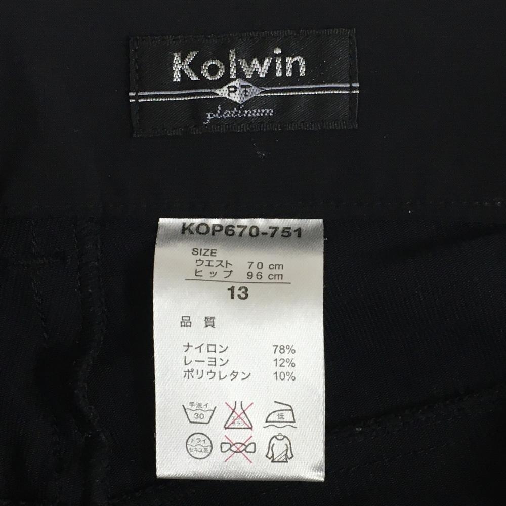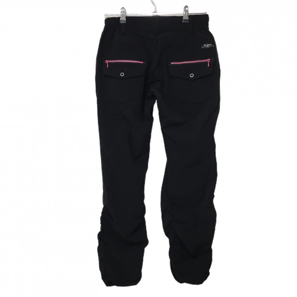 【超美品】コルウィン パンツ 黒 裾ギャザー ジップピンク ストレッチ レディース 13 ゴルフウェア Kolwin