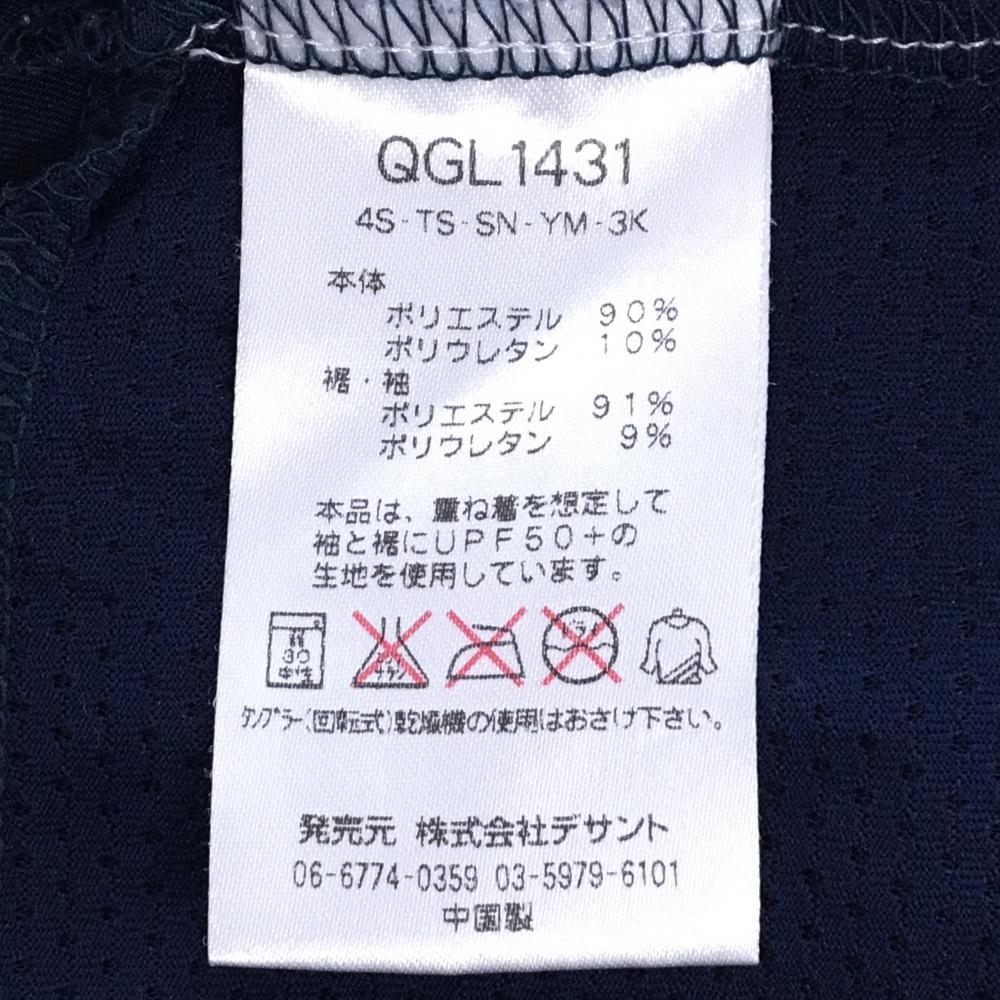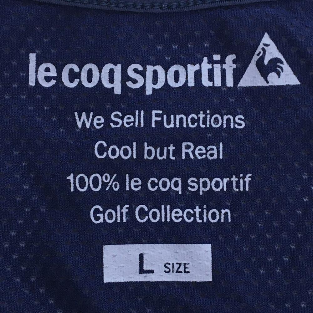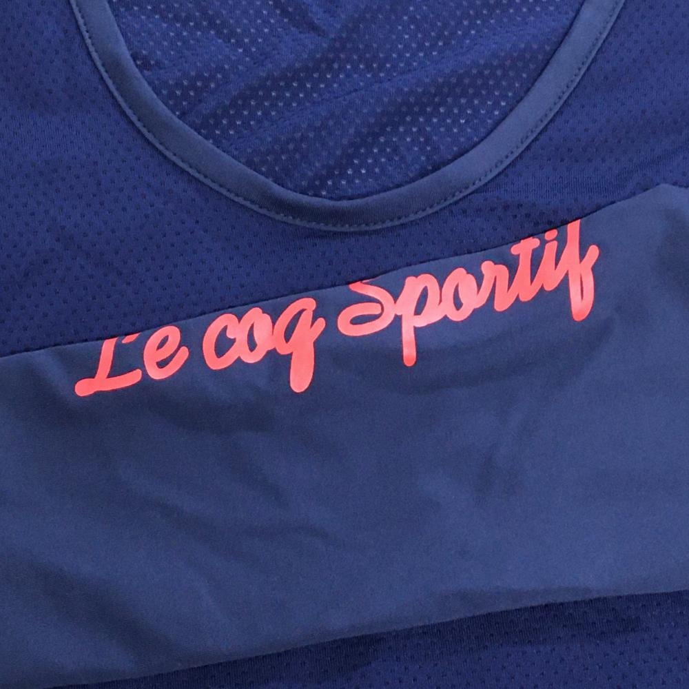 【超美品】ルコックゴルフ インナーシャツ ネイビー 身頃メッシュ調 袖ロゴレッド レディース L ゴルフウェア le coq sportif