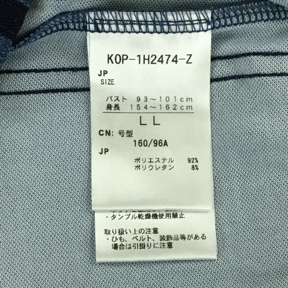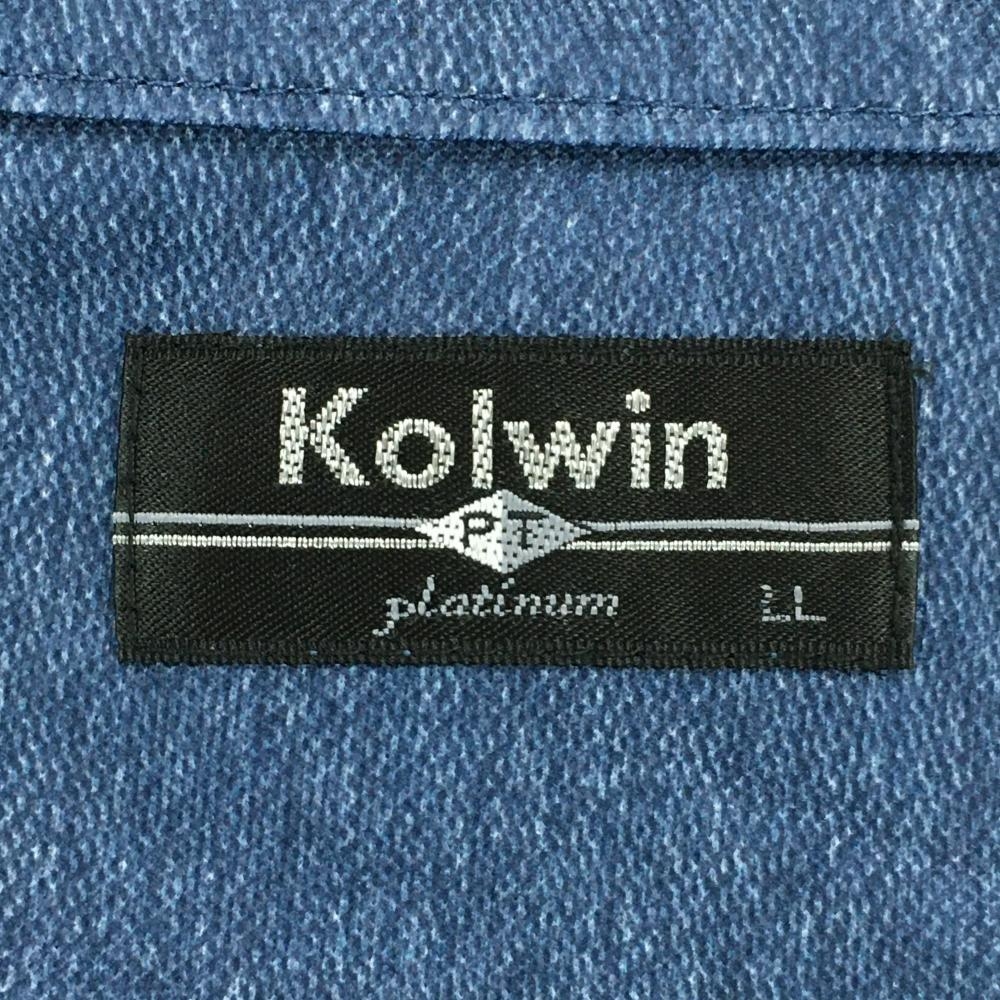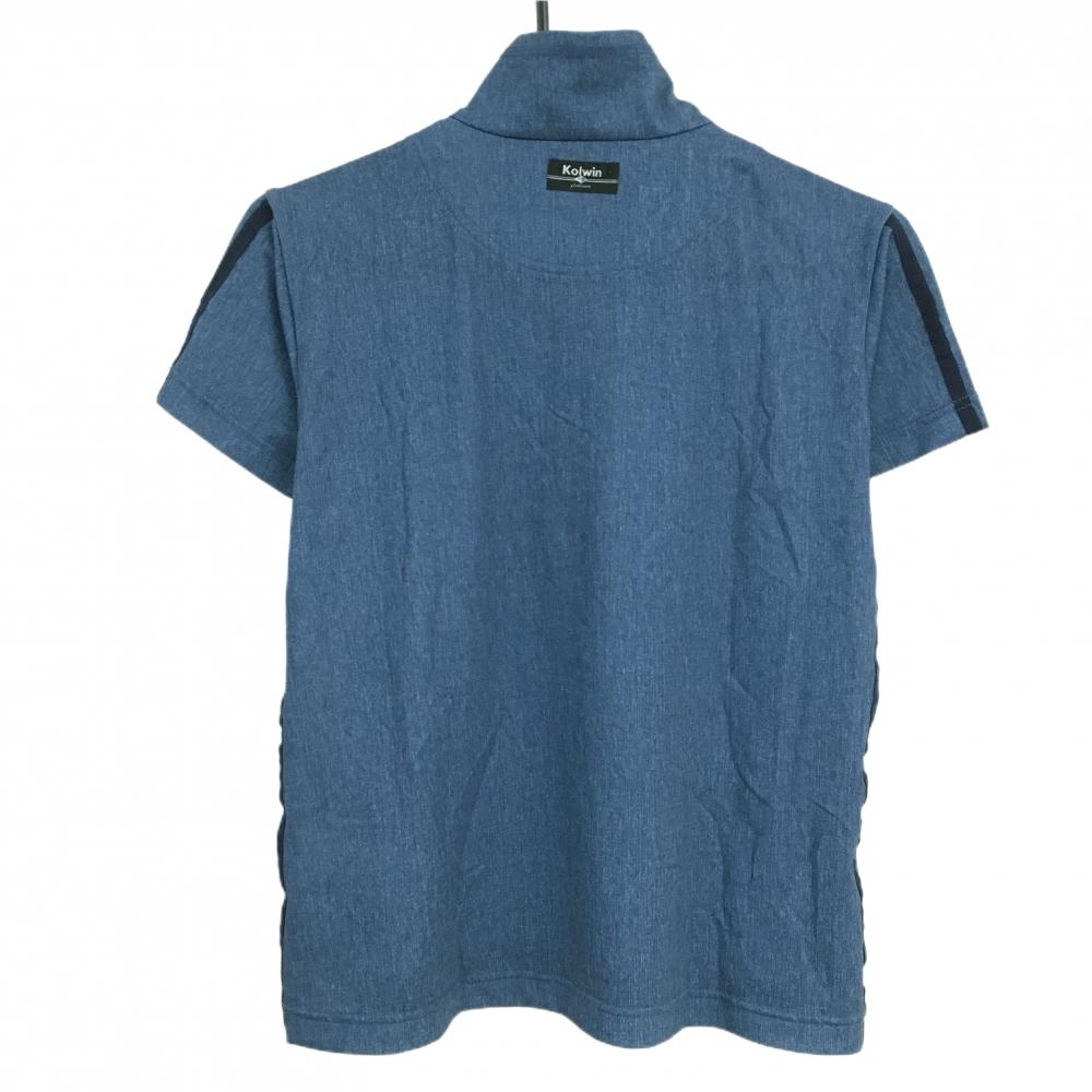 【超美品】コルウィン 半袖ハイネックシャツ 杢ブルー×白 ハーフジップ サイドライン レディース LL ゴルフウェア Kolwin