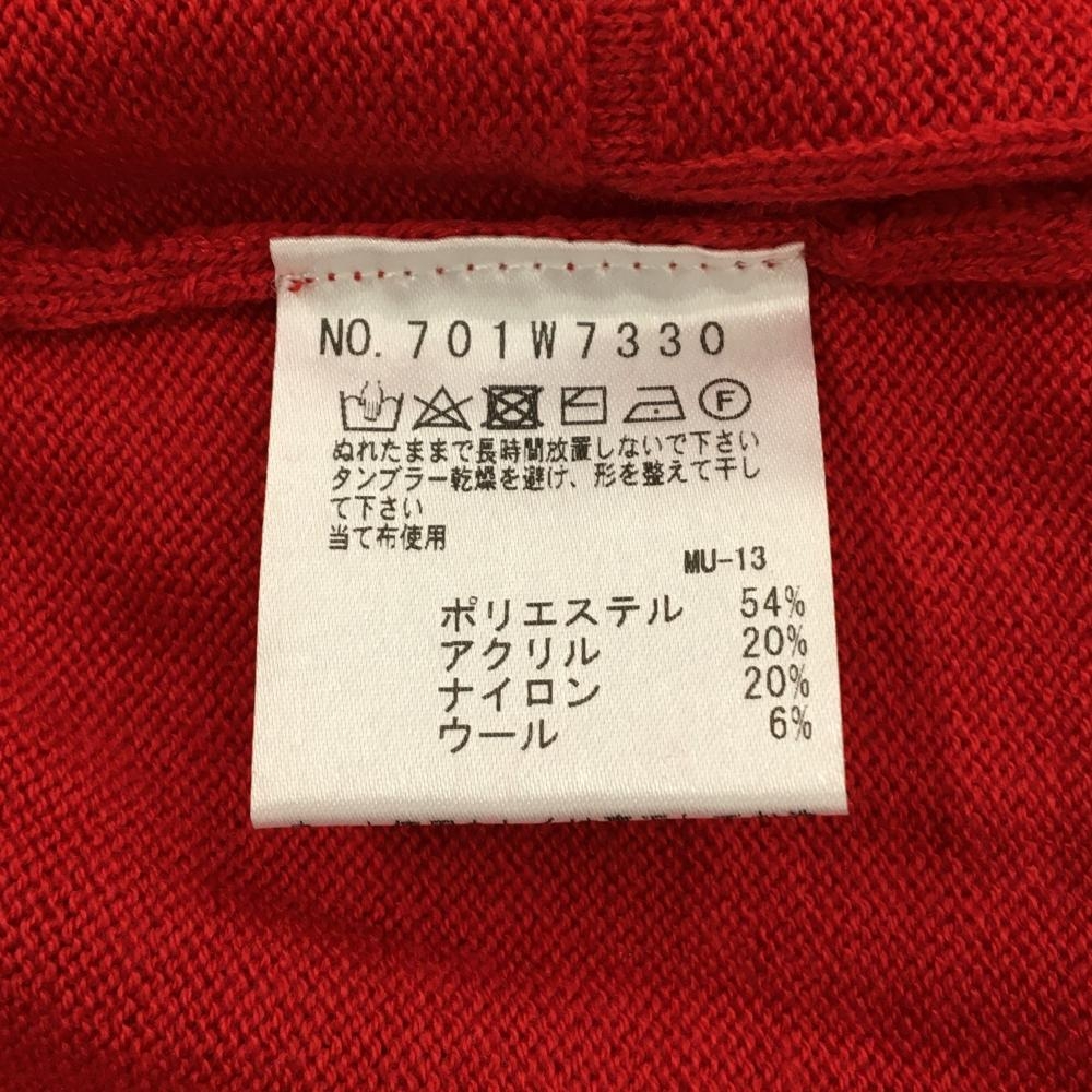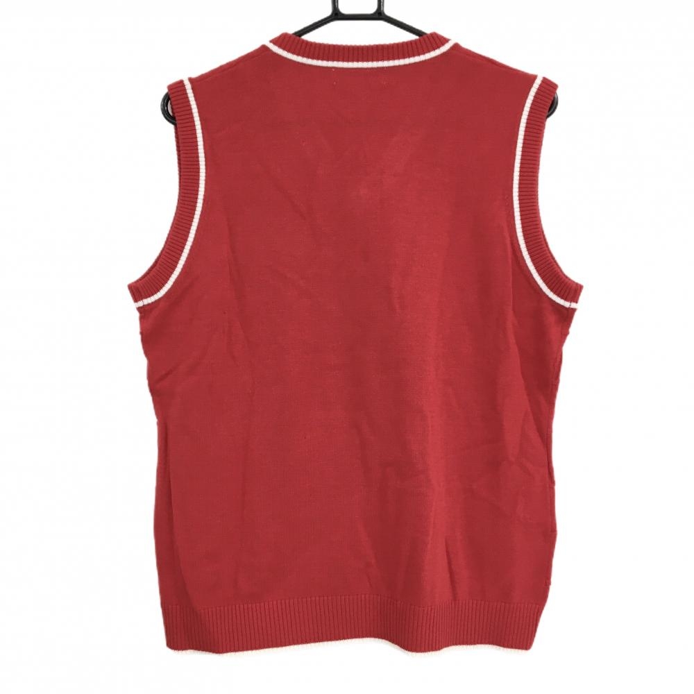 【美品】MUスポーツ ニットベスト レッド×白 地模様 胸元刺しゅう Vネック ウール混 レディース 44(XL) ゴルフウェア M・U SPORTS
