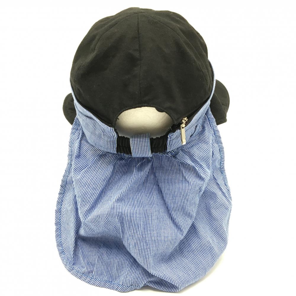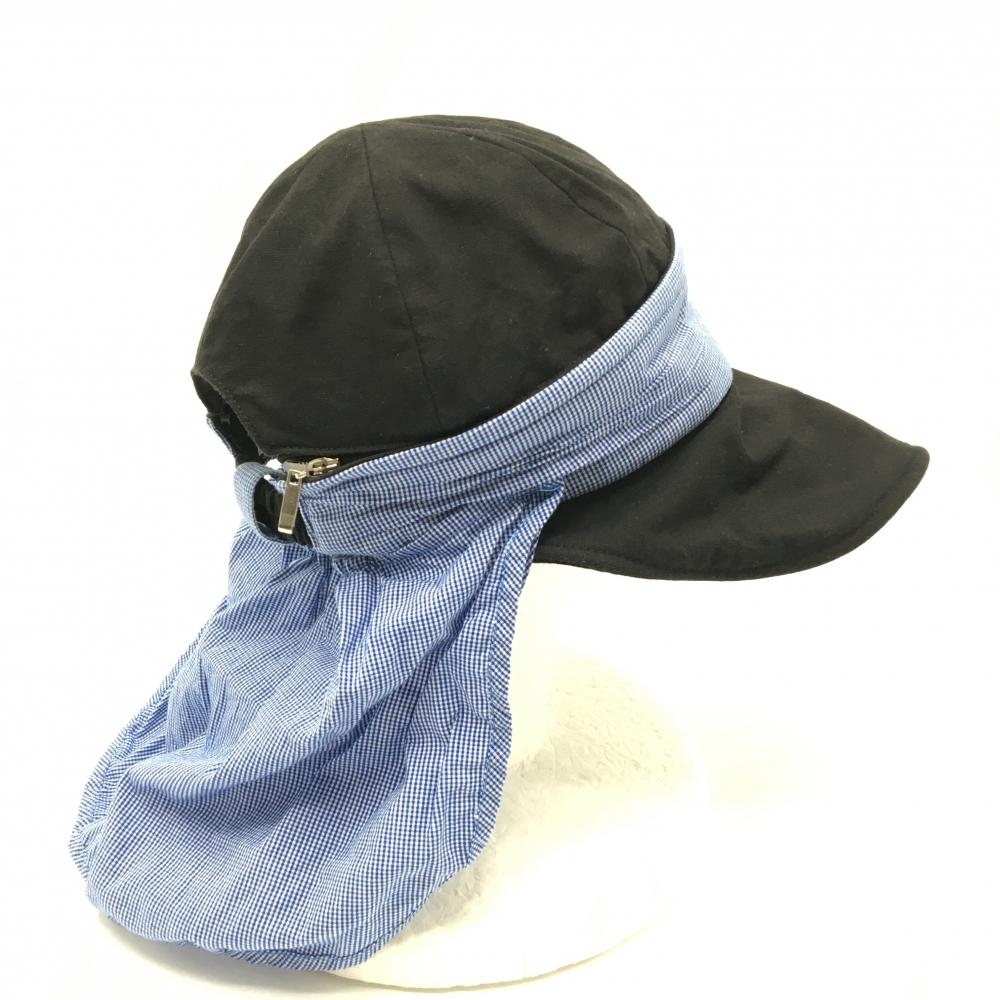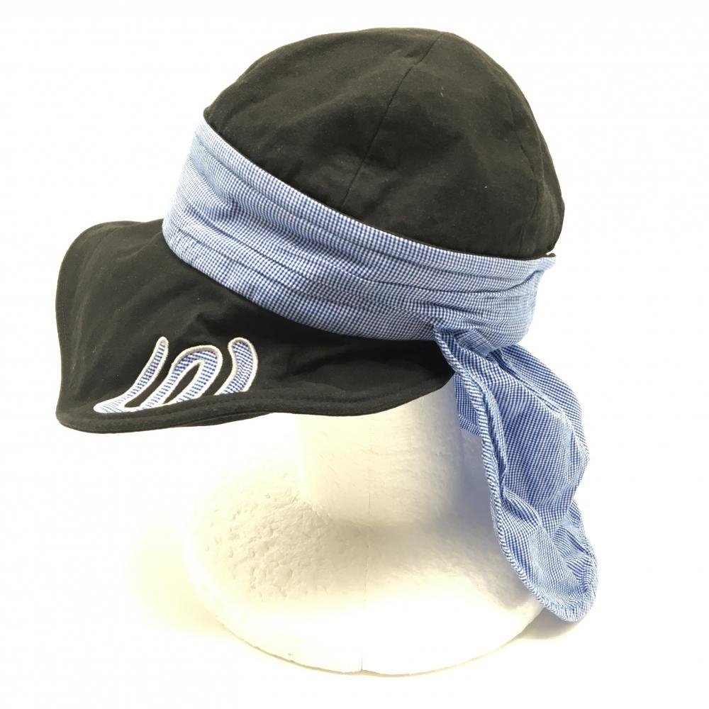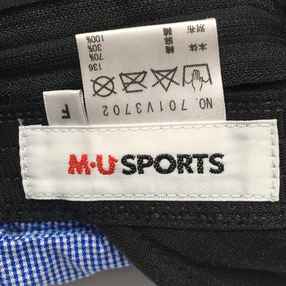 【美品】MUスポーツ 2WAYキャップ 黒×ブルー ロゴ刺しゅう サンバイザー 日よけ付き レディース F ゴルフウェア M・U SPORTS