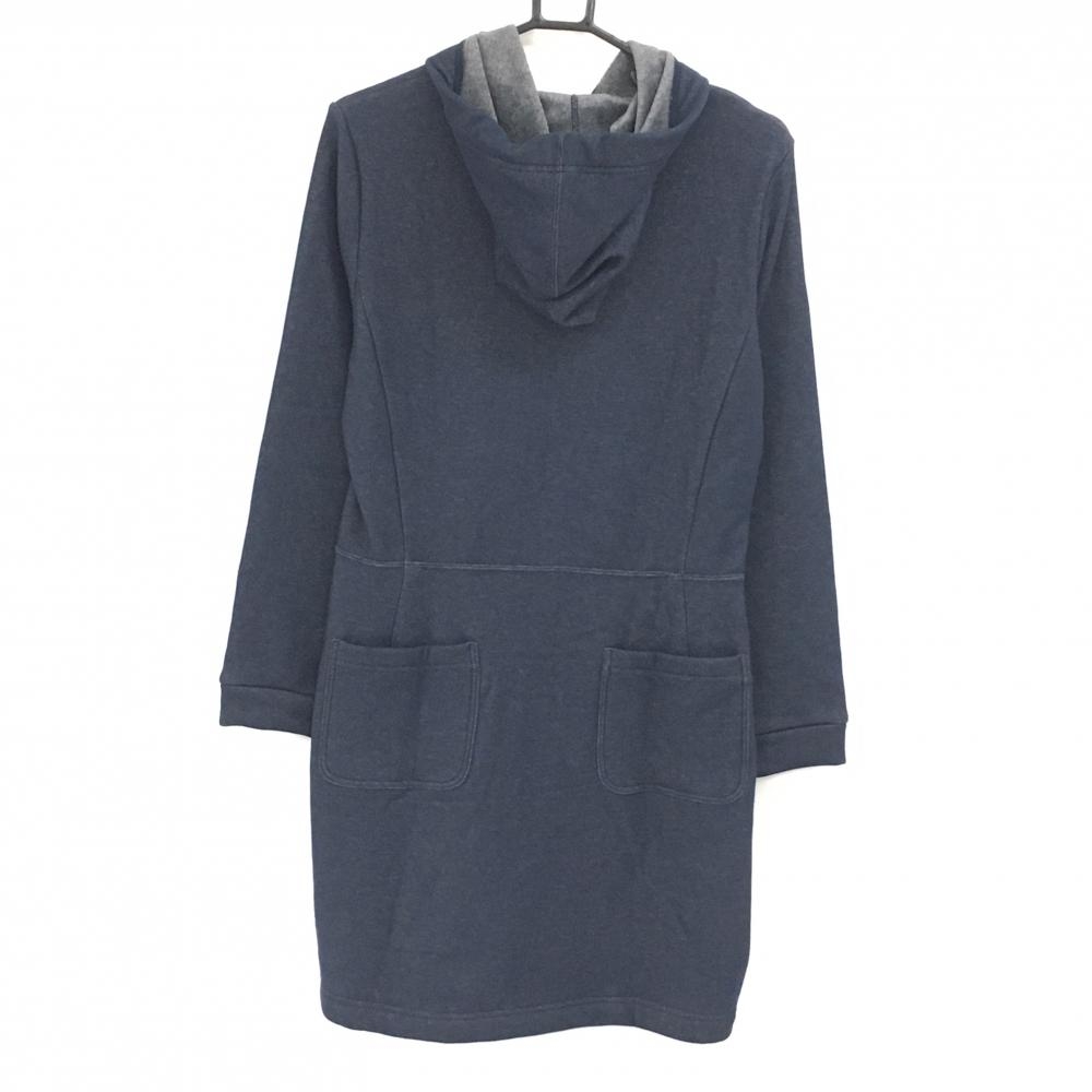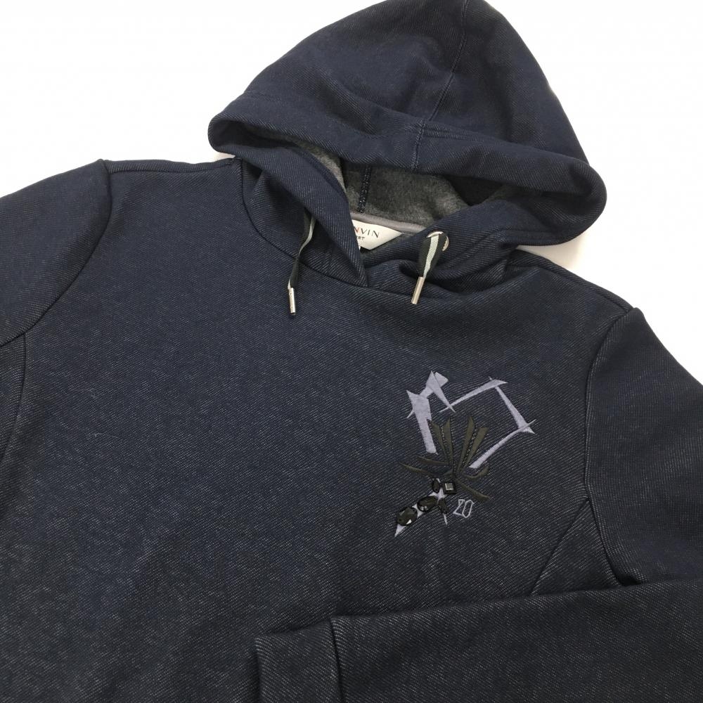 【新品】ランバンスポール フード付ワンピース ネイビー 刺しゅう 裏起毛 レディース 42(XL) ゴルフウェア LANVIN SPORT