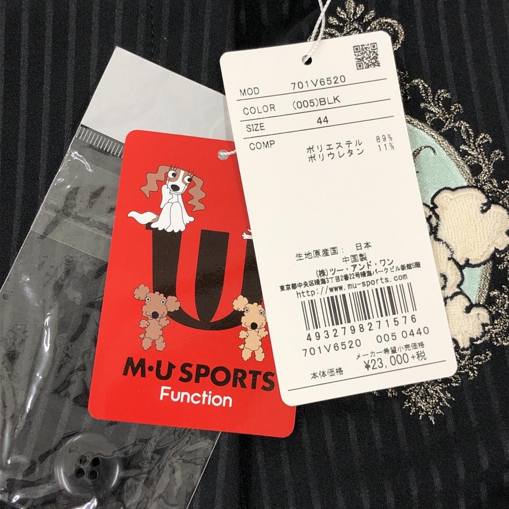 【新品】MUスポーツ キュロットスカート 黒 ストライプ地模様 ストレッチ レディース 44(XXL) ゴルフウェア M・U SPORTS