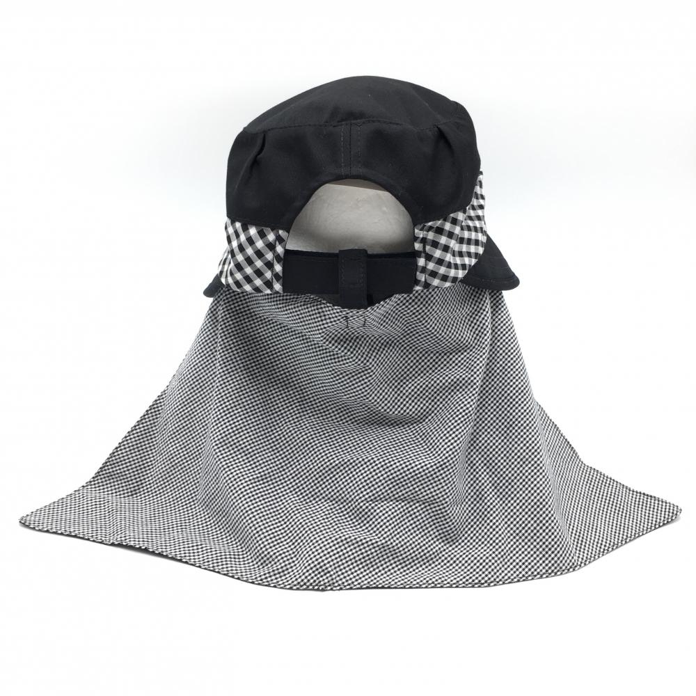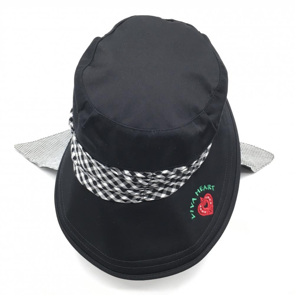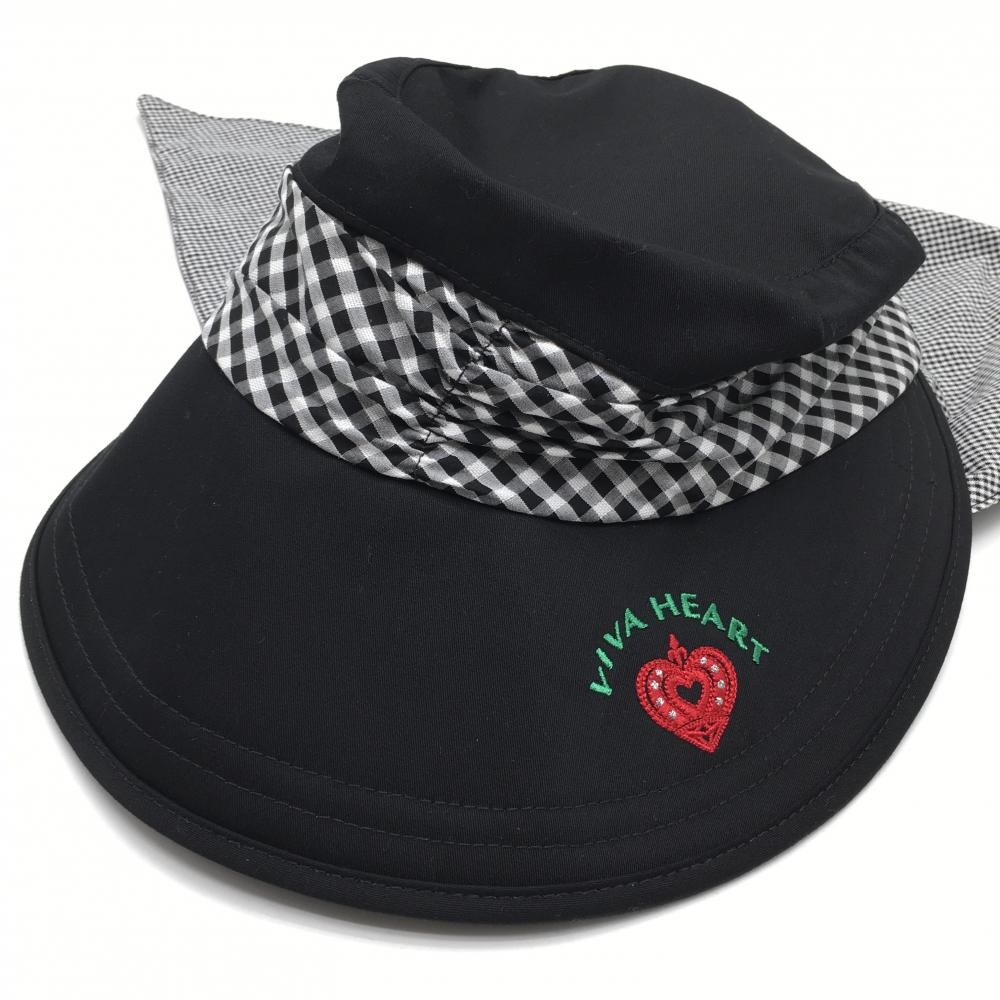 【新品】ビバハート つば広キャップ 黒×白 一部チェック ネックガード着脱可 UVカット レディース 40 ゴルフウェア VIVA HEART