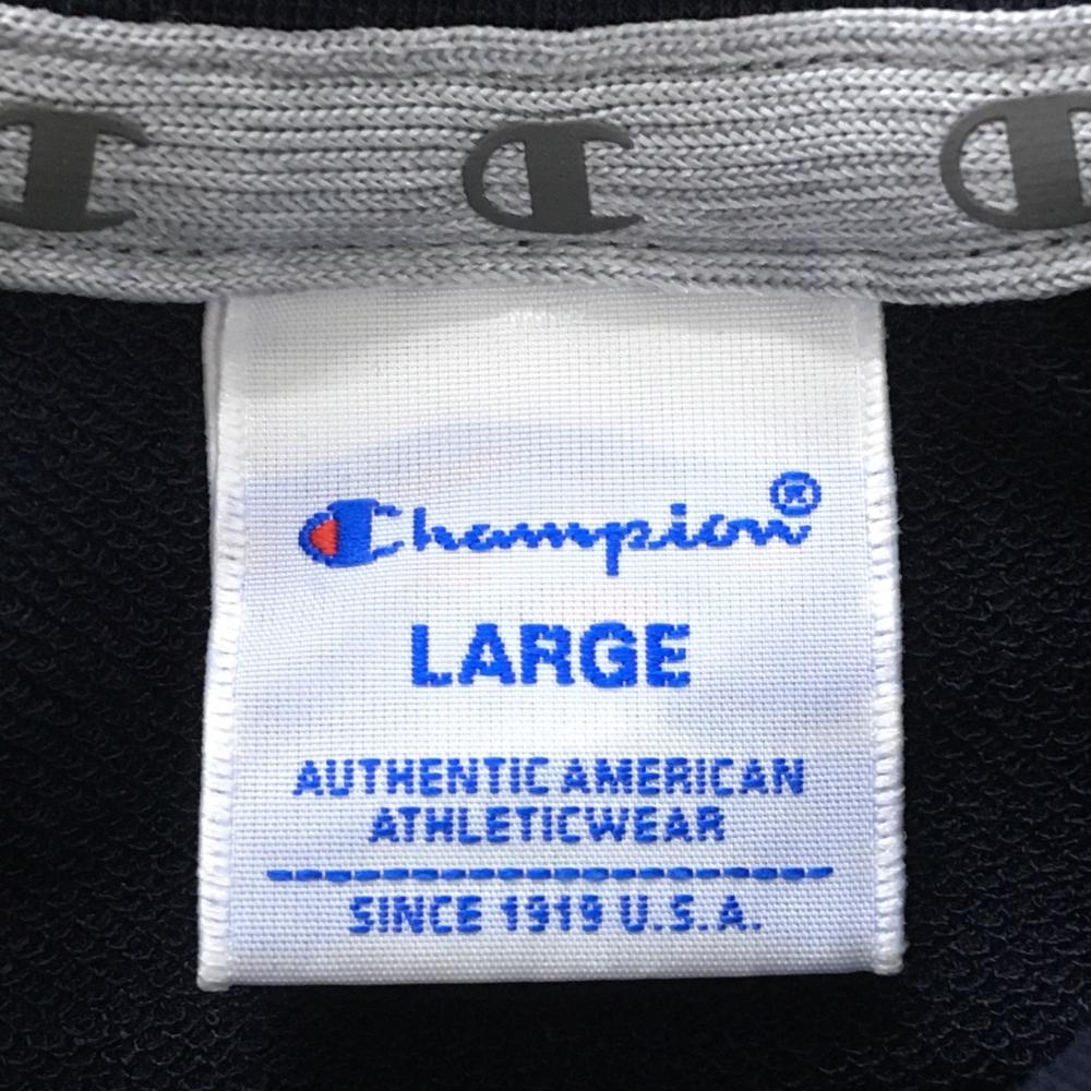 【超美品】チャンピオン 長袖ハイネックシャツ ネイビー×ブルー フロントロゴ 袖口刺しゅう レディース LARGE ゴルフウェア Champion