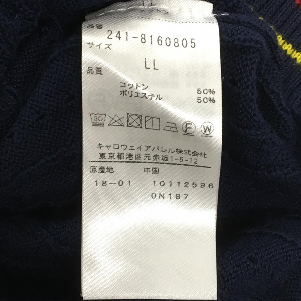【美品】キャロウェイ セーター ネイビー ケーブル編み コットン混 ネックライン ニット レディース LL ゴルフウェア Callaway