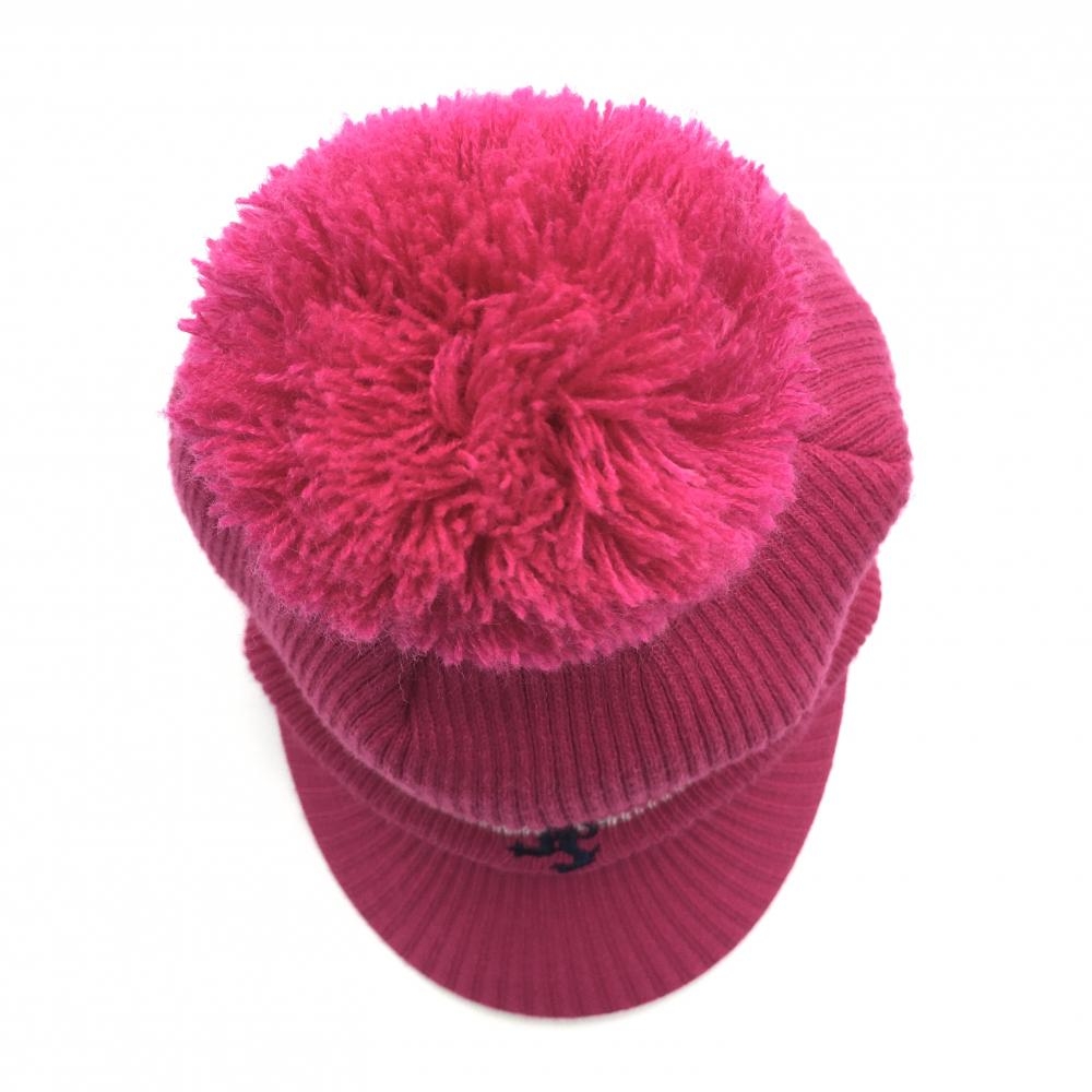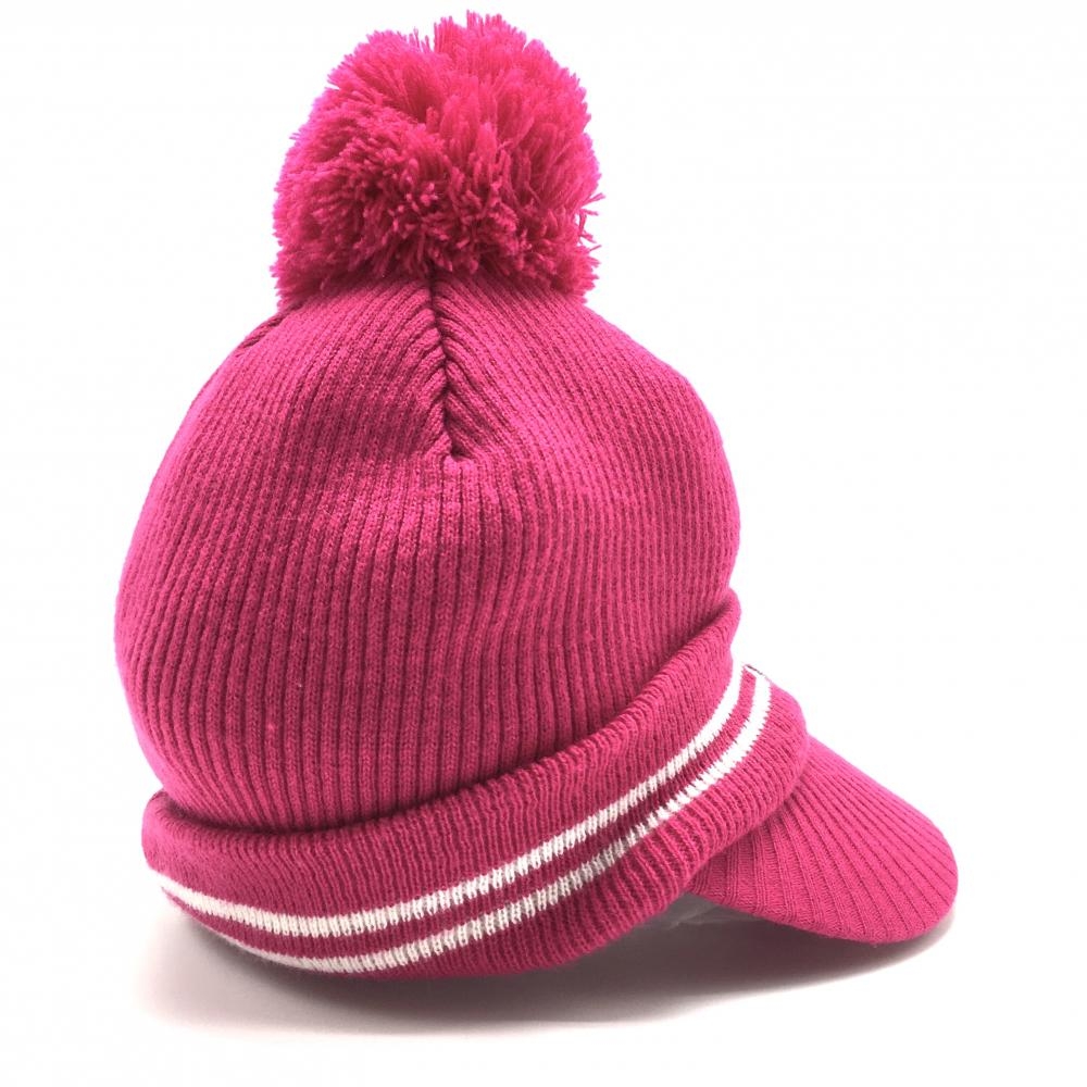【超美品】アドミラル つば付きニット帽 ピンク×白 ライン ボンボン付 48 F ゴルフウェア Admiral