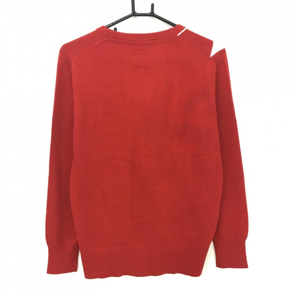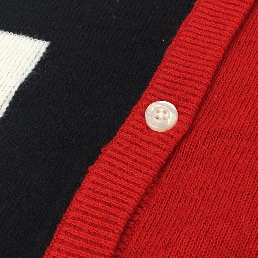 【美品】アドミラル カーディガン レッド×白×ネイビー ロゴ刺しゅう ウール混 レディース LL ゴルフウェア Admiral