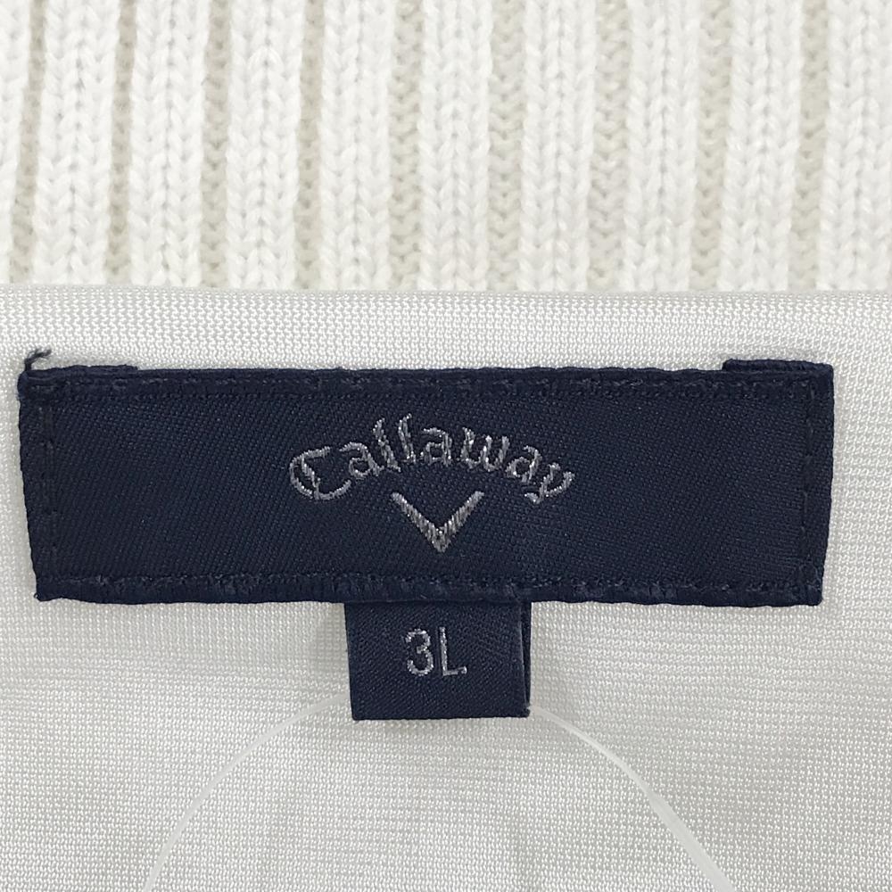 【美品】キャロウェイ ニットジャケット 白×ネイビー 袖ケーブル編み ウール混 裏地付 メンズ 3L ゴルフウェア 大きいサイズ Callaway