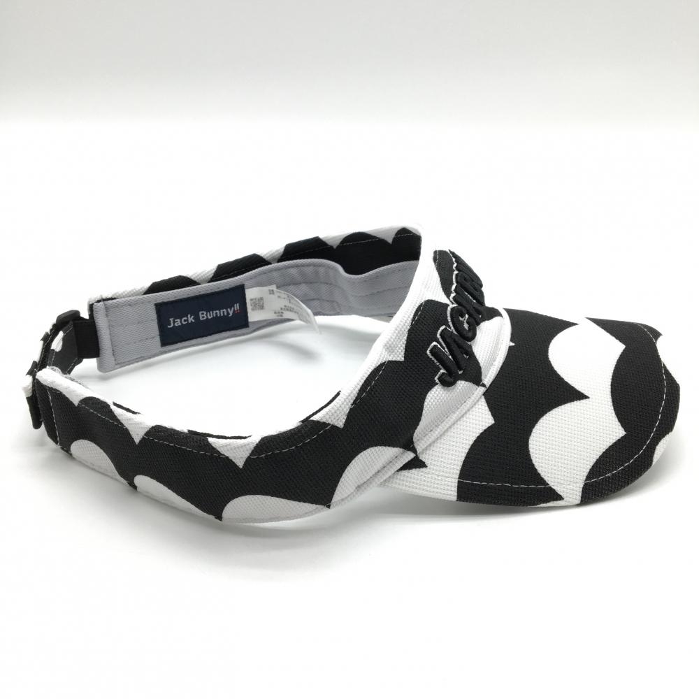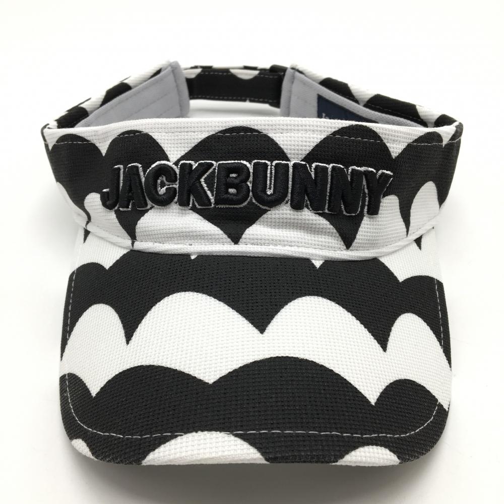 【美品】ジャックバニー サンバイザー 白×黒 総柄 ロゴ刺しゅう FR ゴルフウェア Jack Bunny