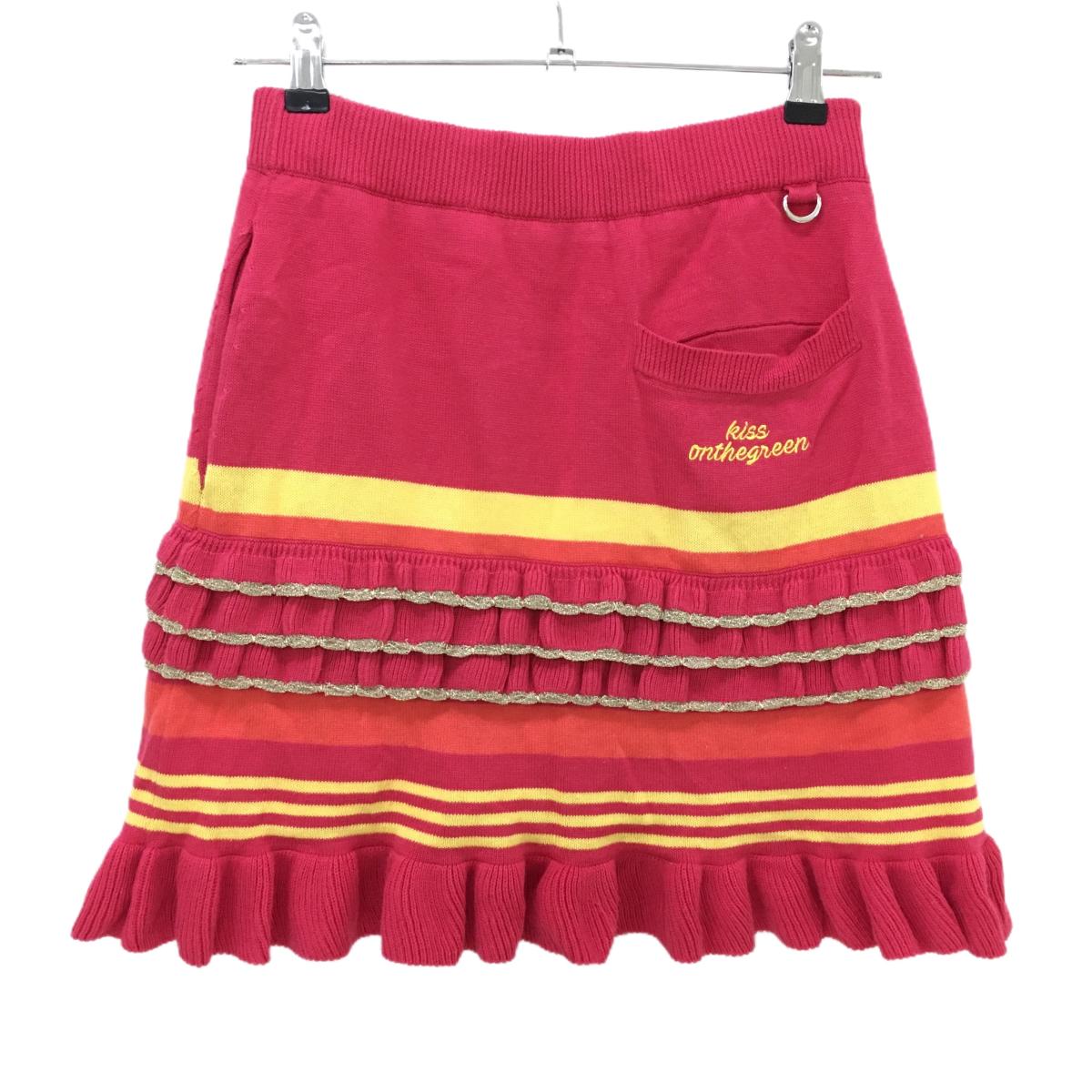 【美品】キスオンザグリーン ニットスカート ピンク×イエロー 内側インナーパンツ レディース ゴルフウェア kiss on the green