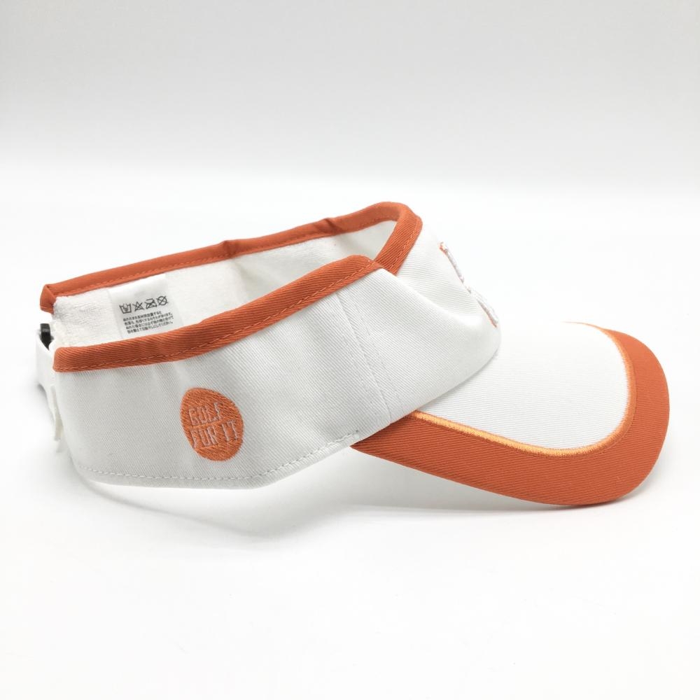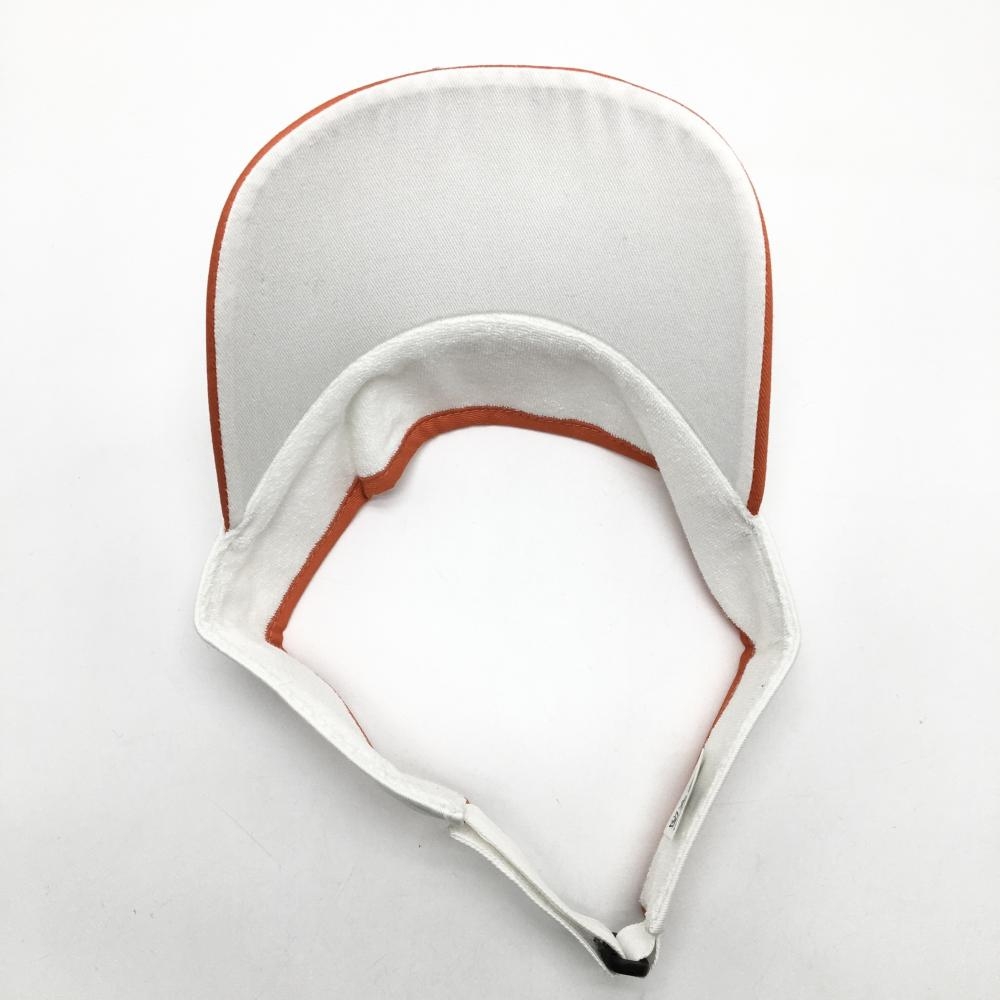 【美品】キスオンザグリーン サンバイザー 白×オレンジ ロゴ刺しゅう フリー ゴルフウェア kiss on the green