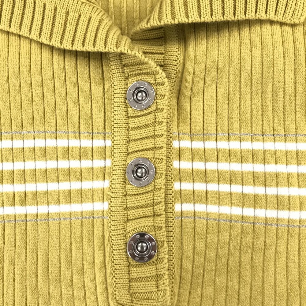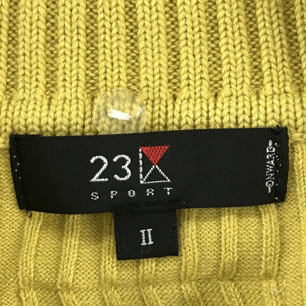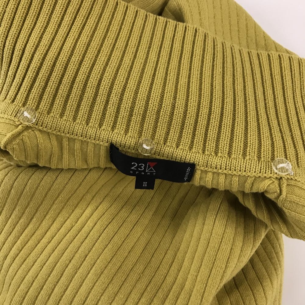 【美品】23区スポーツ 半袖セーター マスタードイエロー リブ編み ニット レディース II(L) ゴルフウェア 23区