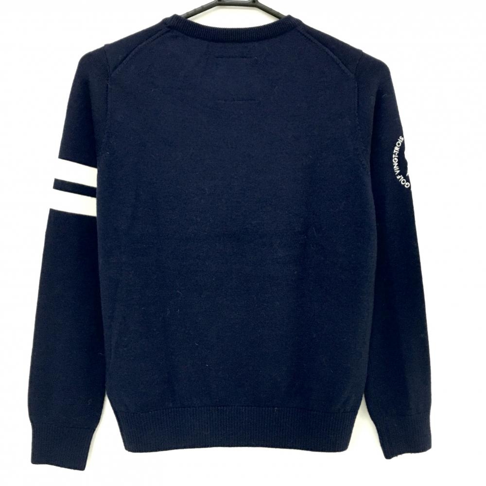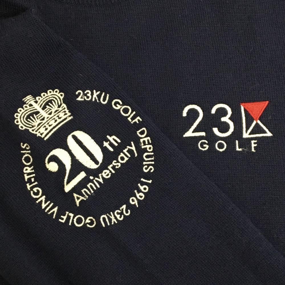 【美品】23区ゴルフ セーター ネイビー ウール100% ロゴ ニット レディース I(M) ゴルフウェア 23区