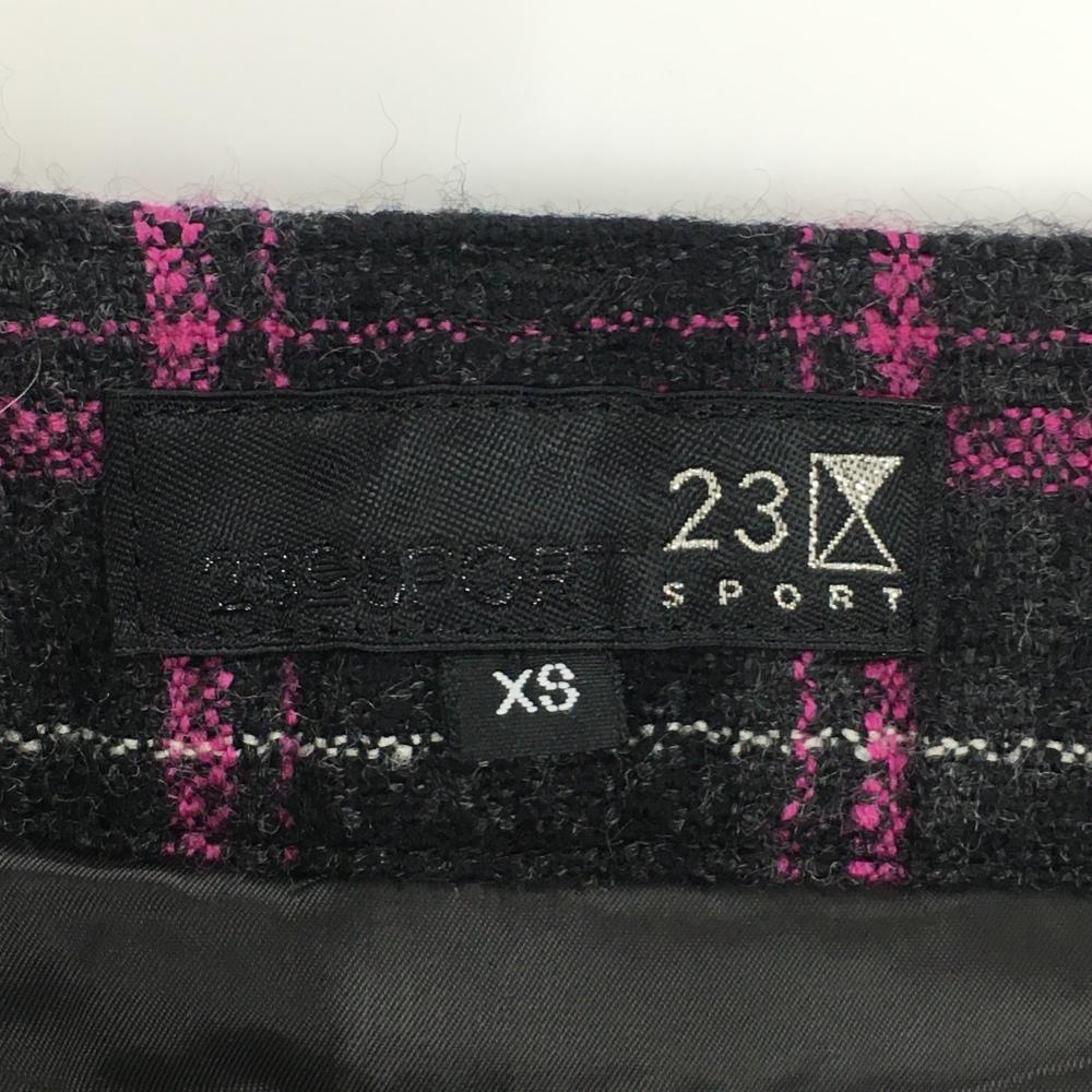 【超美品】23区スポーツ プリーツスカート 黒×ピンク チェック ウール100% 裏地付 レディース XS ゴルフウェア 23区