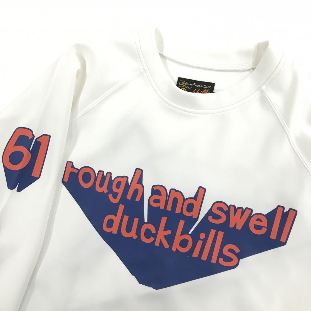 【超美品】ラフアンドスウェル トレーナー 白×レッド フロントロゴ 薄手 メンズ L ゴルフウェア rough&swell
