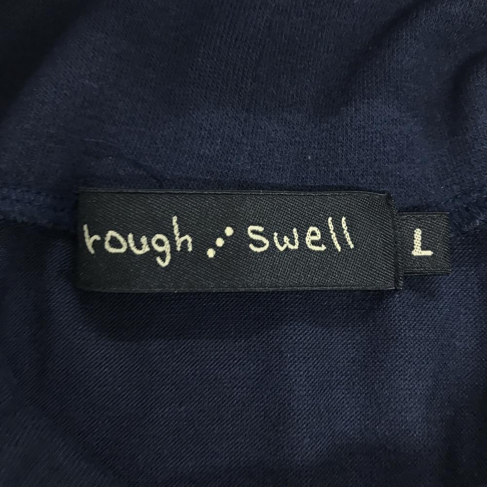 【美品】ラフアンドスウェル 長袖ハイネックシャツ ネイビー×白 フロントロゴ メンズ L ゴルフウェア rough&swell