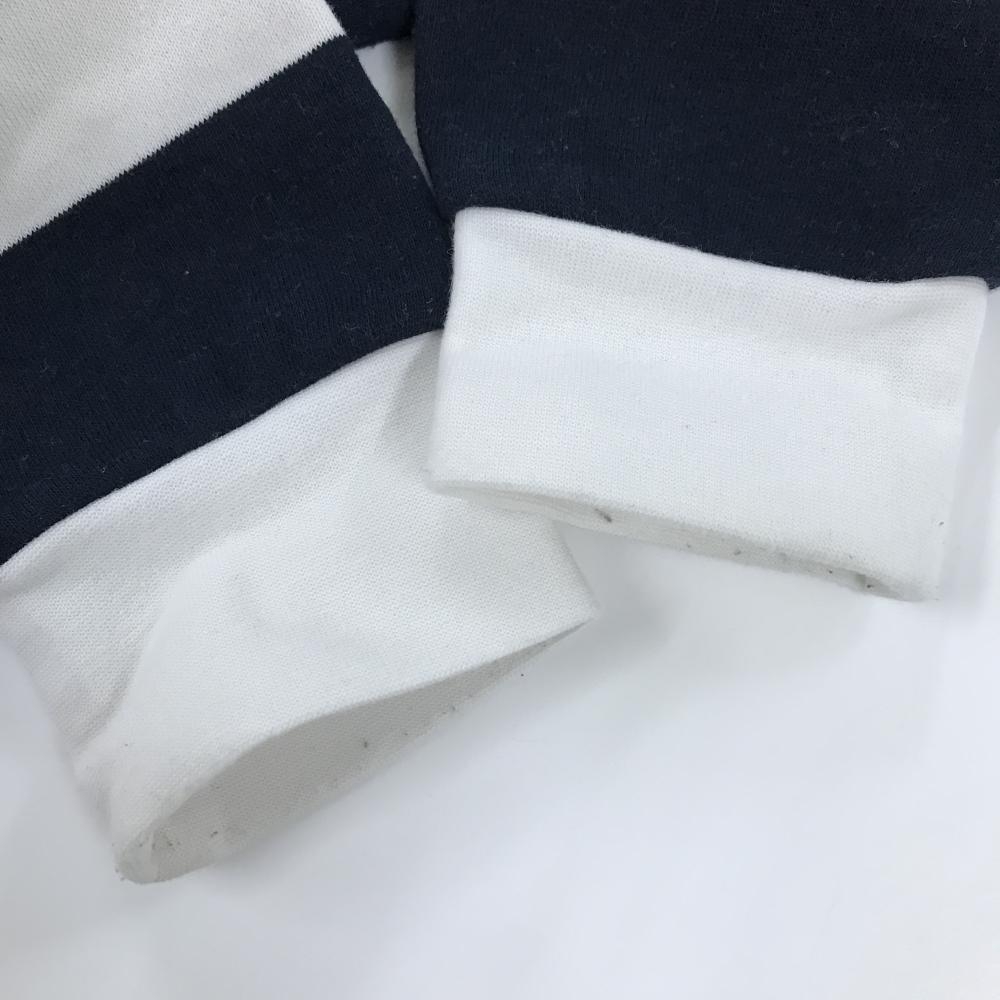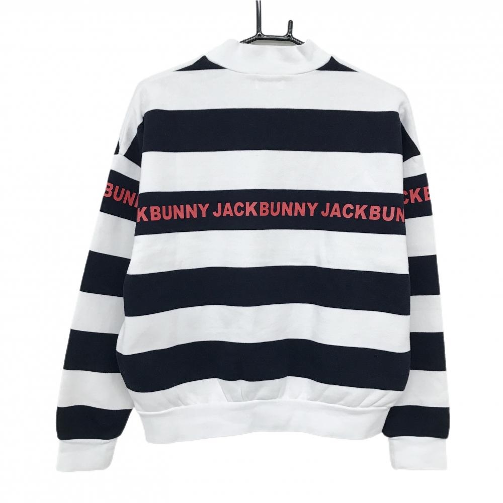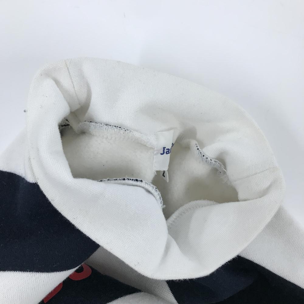 ジャックバニー ハイネックトレーナー 白×ダークネイビー 太ボーダー 裏起毛 ロゴレッド レディース 2(L) ゴルフウェア Jack Bunny
