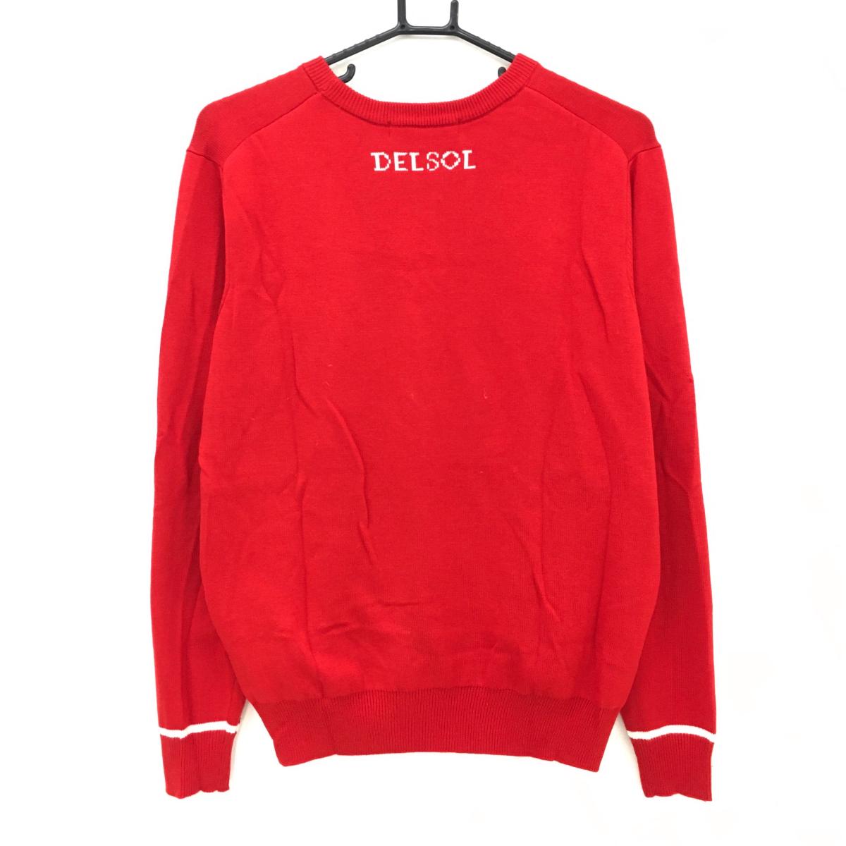 デルソル セーター レッド×白 胸元ワッペン ウール混 ニット レディース LL ゴルフウェア DELSOL