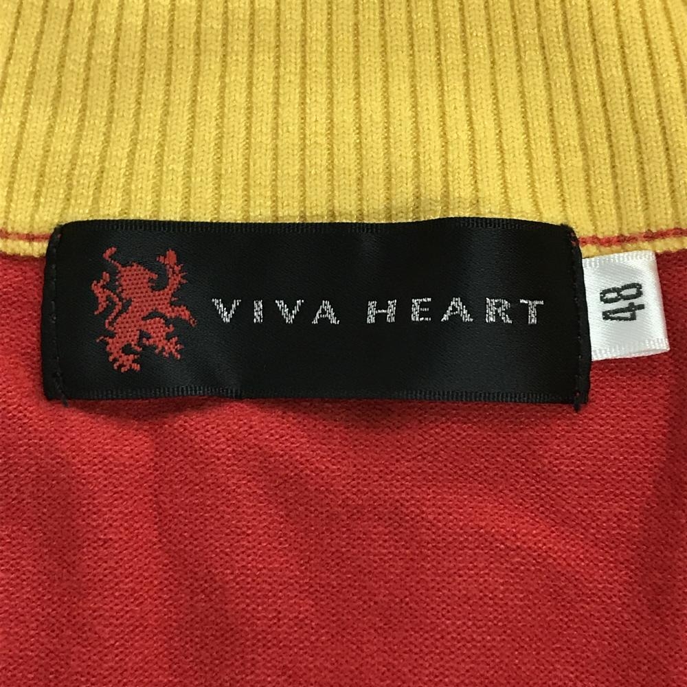 【美品】ビバハート ニットジャケット レッド×グレー×イエロー ダブルジップ 胸ロゴ メンズ 48(M) ゴルフウェア VIVA HEART