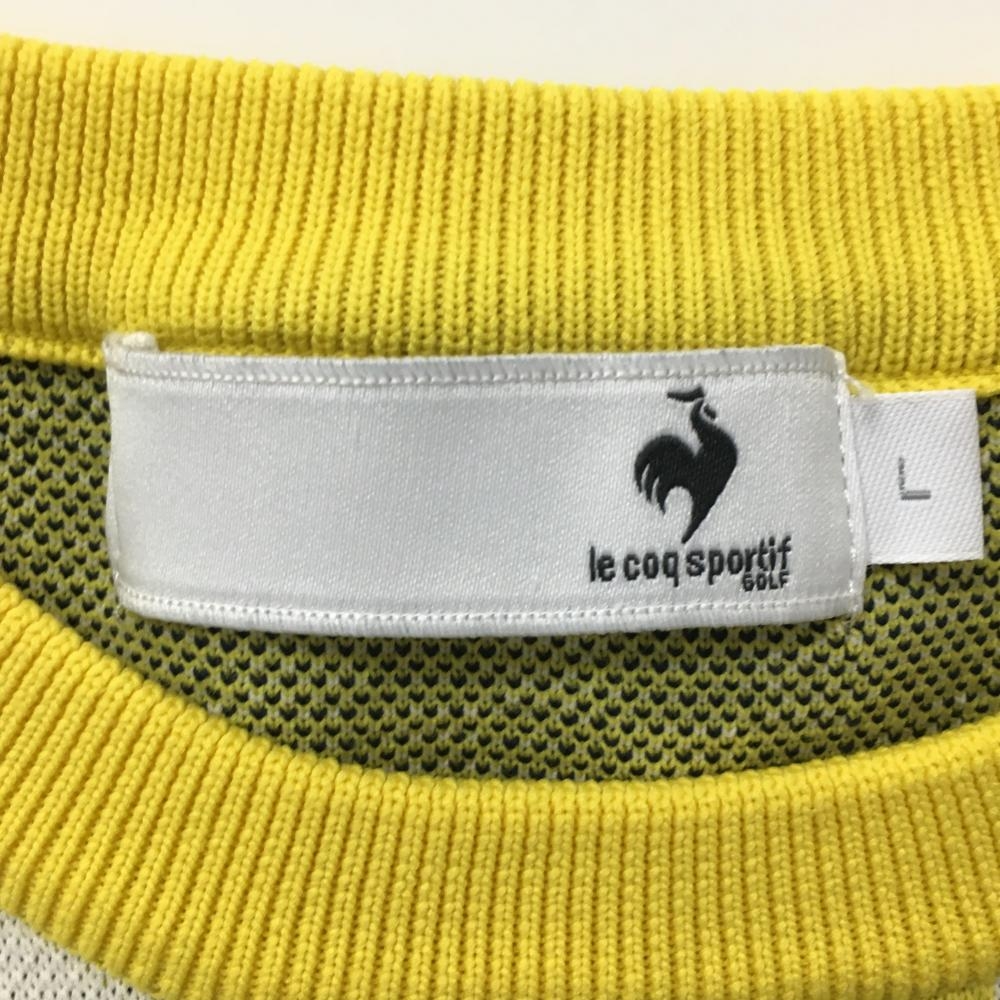 ルコックゴルフ セーター イエロー×ネイビー×白 ブロックチェック ニット レディース L ゴルフウェア le coq sportif