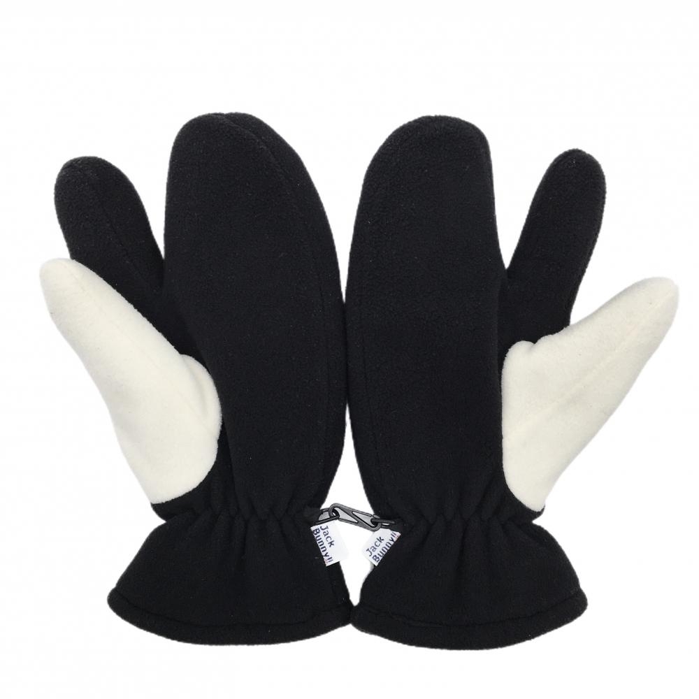 【美品】ジャックバニー 手袋 黒×白 ロゴ刺しゅう ミトングローブ フリース メンズ L ゴルフウェア Jack Bunny