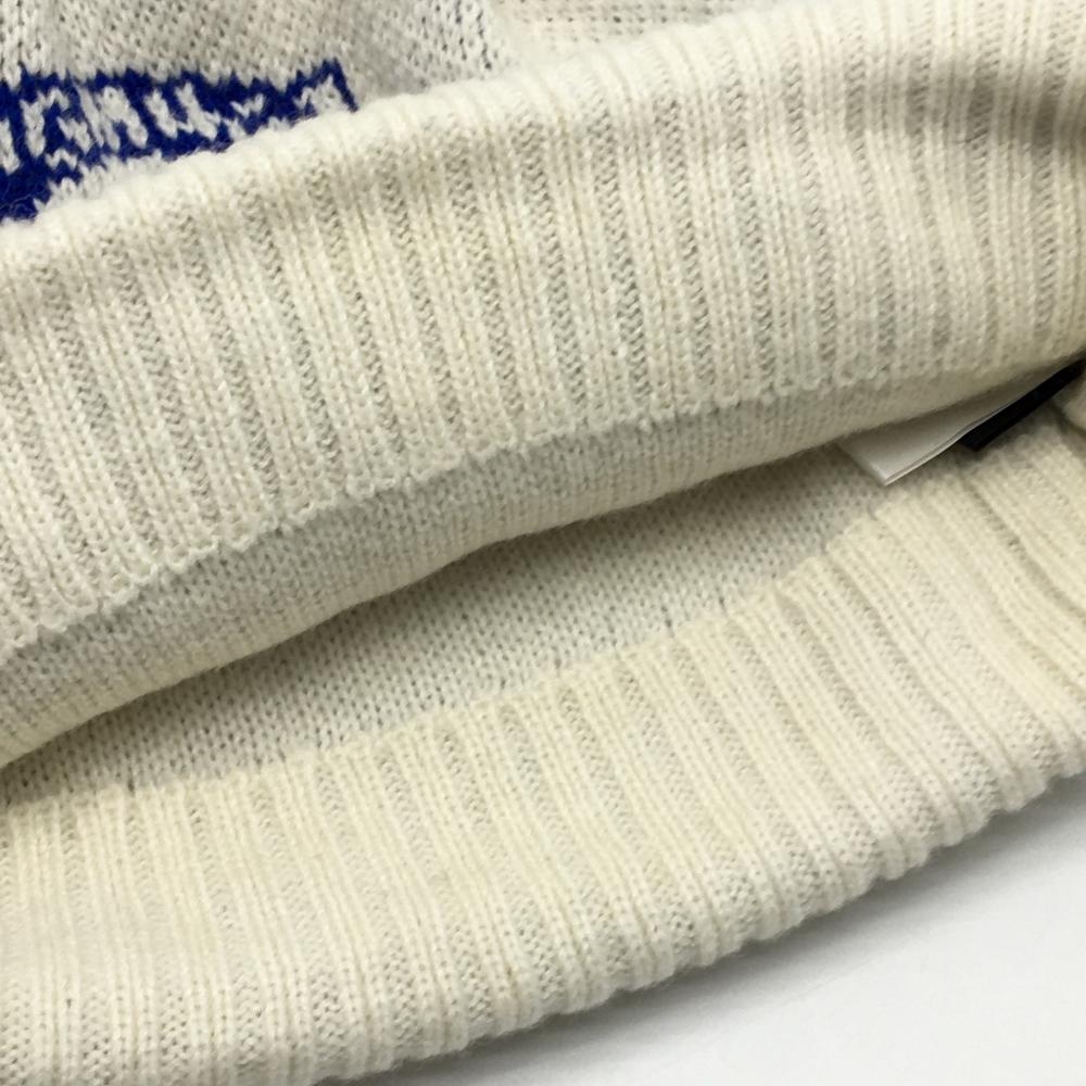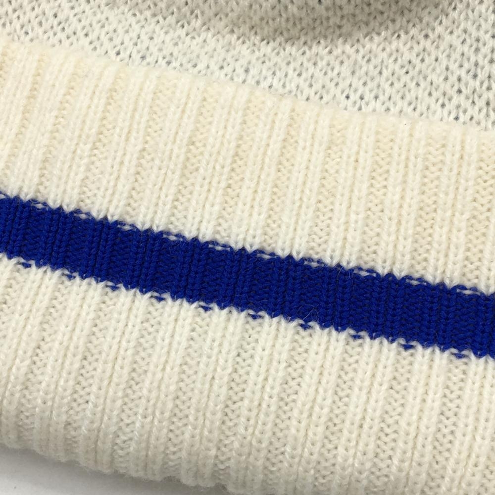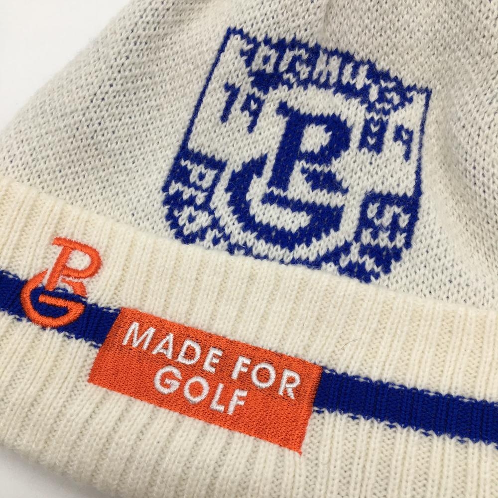 パーリーゲイツ ニット帽 白×ブルー ウール混 ボンボン付 FR ゴルフウェア PEARLY GATES