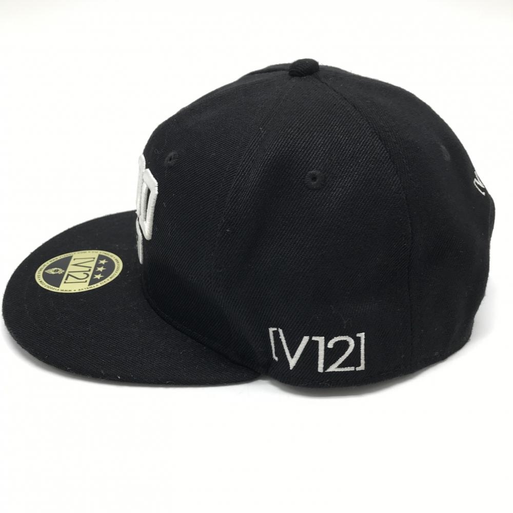 【美品】V12 フラットキャップ 黒×白 汗取りパッド付 ロゴ刺しゅう ゴルフウェア V12