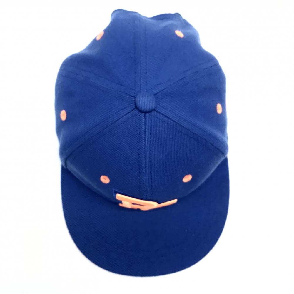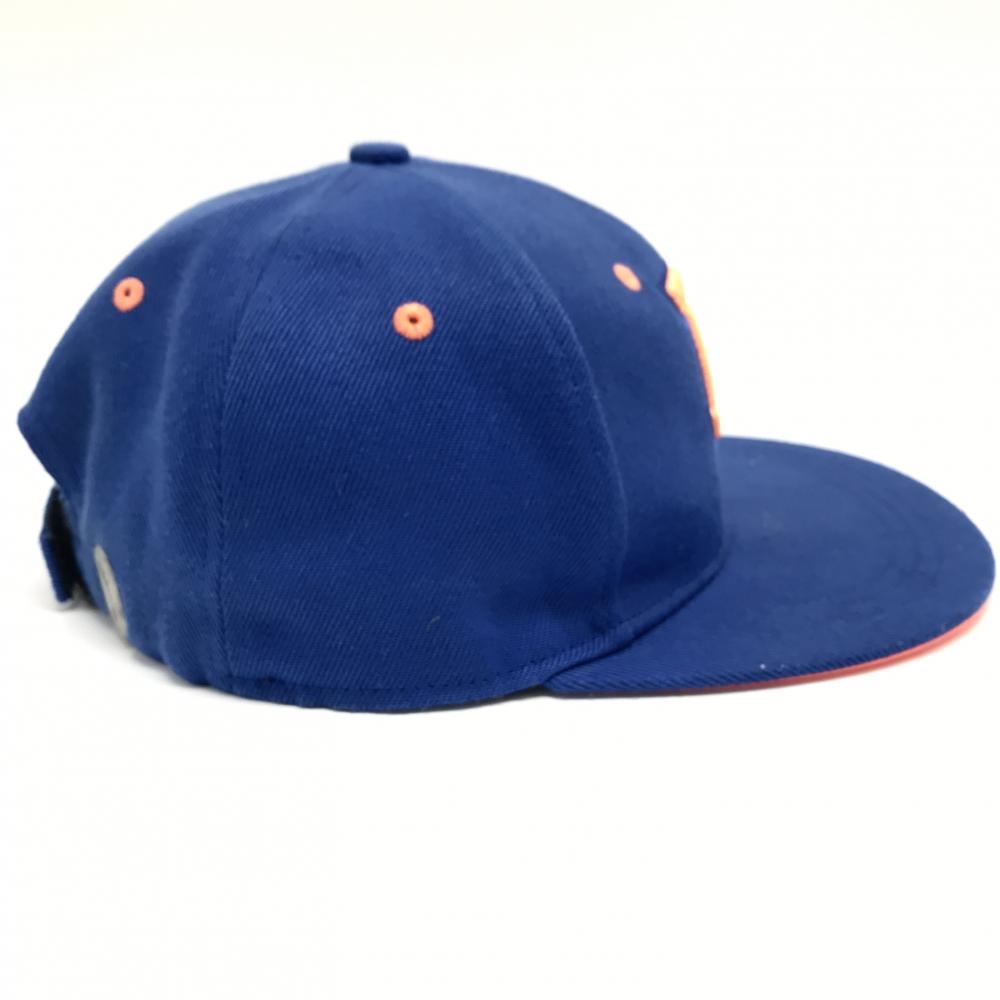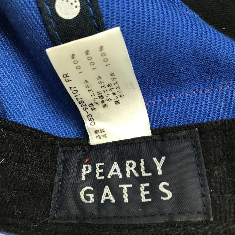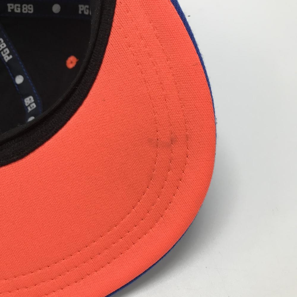 【美品】パーリーゲイツ フラットキャップ ブルー×蛍光オレンジ 汗取りパッド付 立体ロゴ刺しゅう FR ゴルフウェア PEARLY GATES