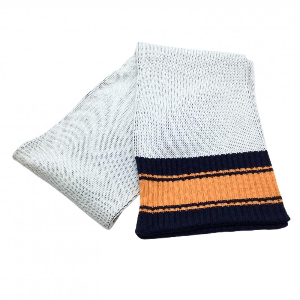 【美品】パーリーゲイツ マフラー 白×ネイビー×オレンジ ロング丈 ビッグワッペン FR ゴルフウェア PEARLY GATES