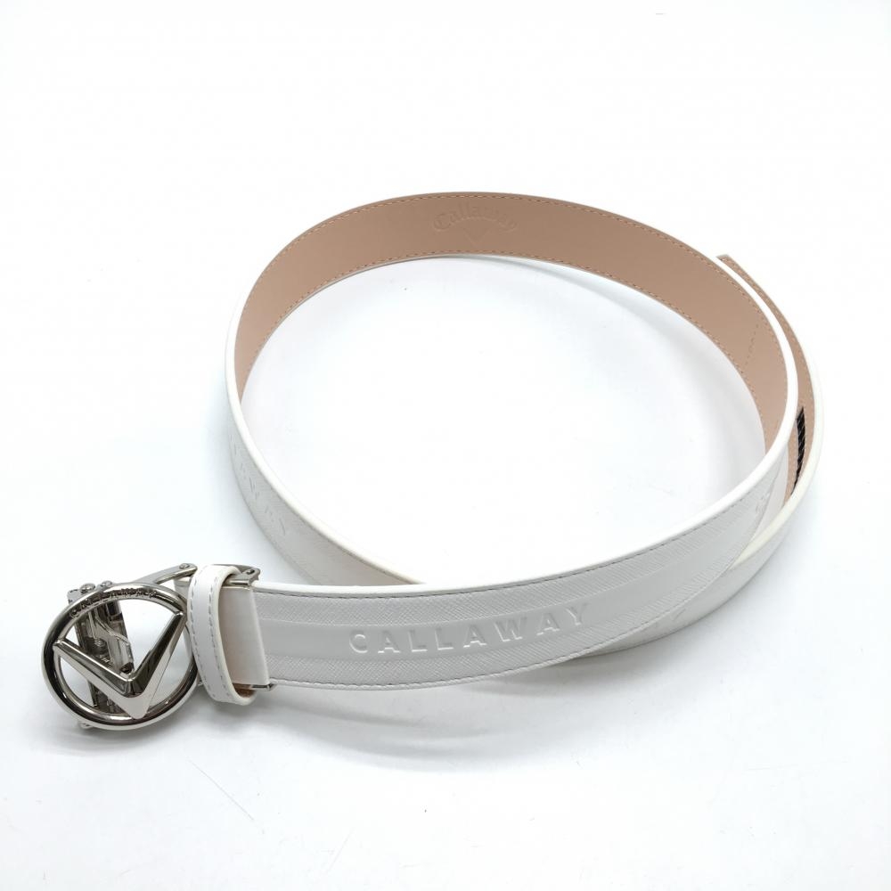 【超美品】キャロウェイ セレーションベルト 白 ロゴ シルバーバックル レディース ゴルフウェア Callaway