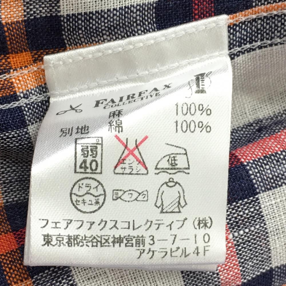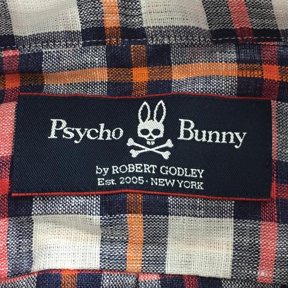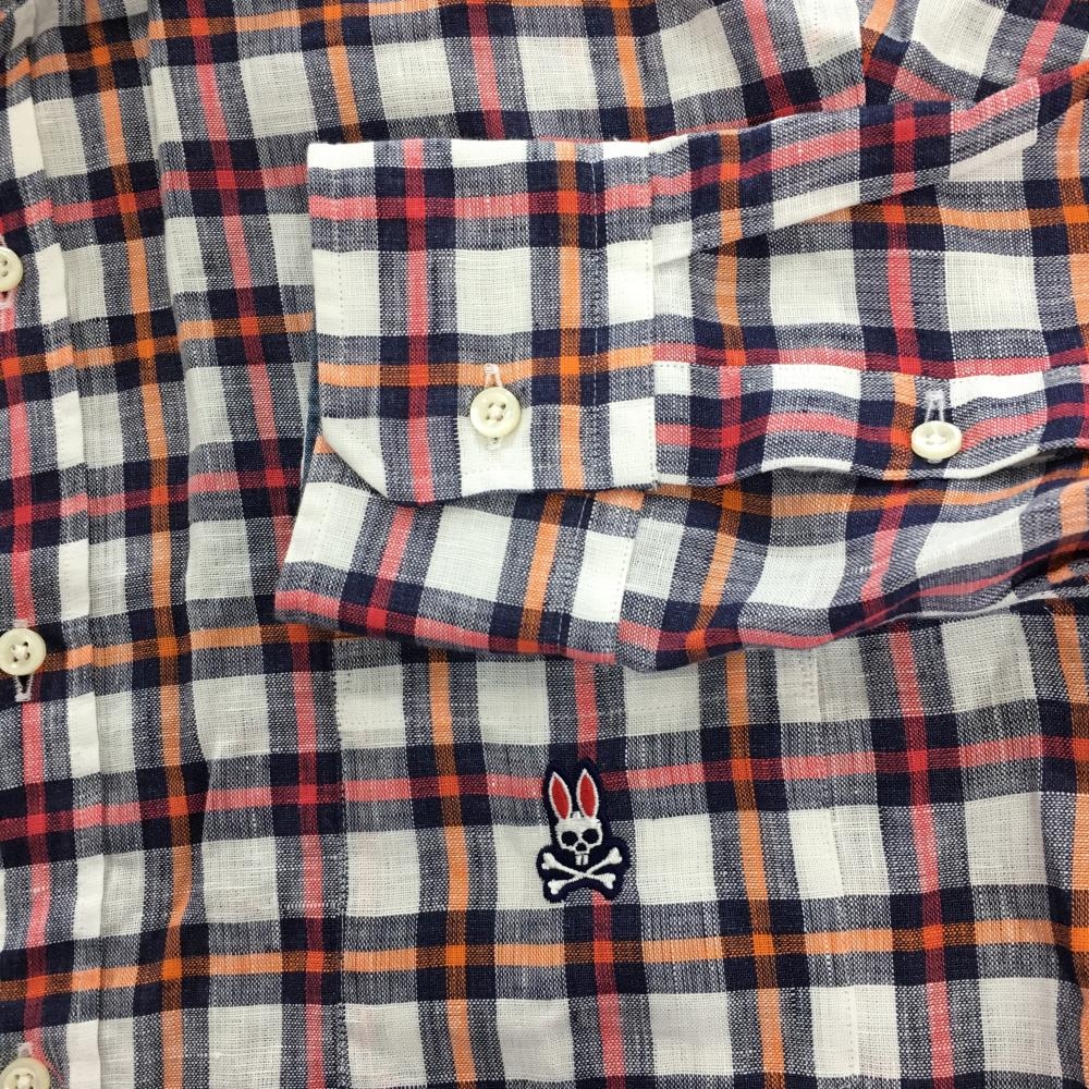 【超美品】サイコバニー 長袖シャツ 白×レッドピンク系×オレンジ チェック 麻100% メンズ XL ゴルフウェア Psycho Bunny