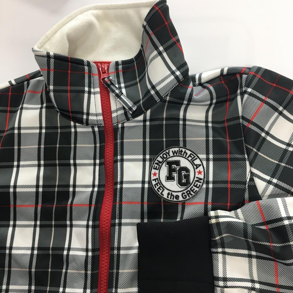 【美品】フィラゴルフ ジャケット 白×黒 チェック柄 裏微起毛 ロゴワッペン レディース L ゴルフウェア FILA GOLF