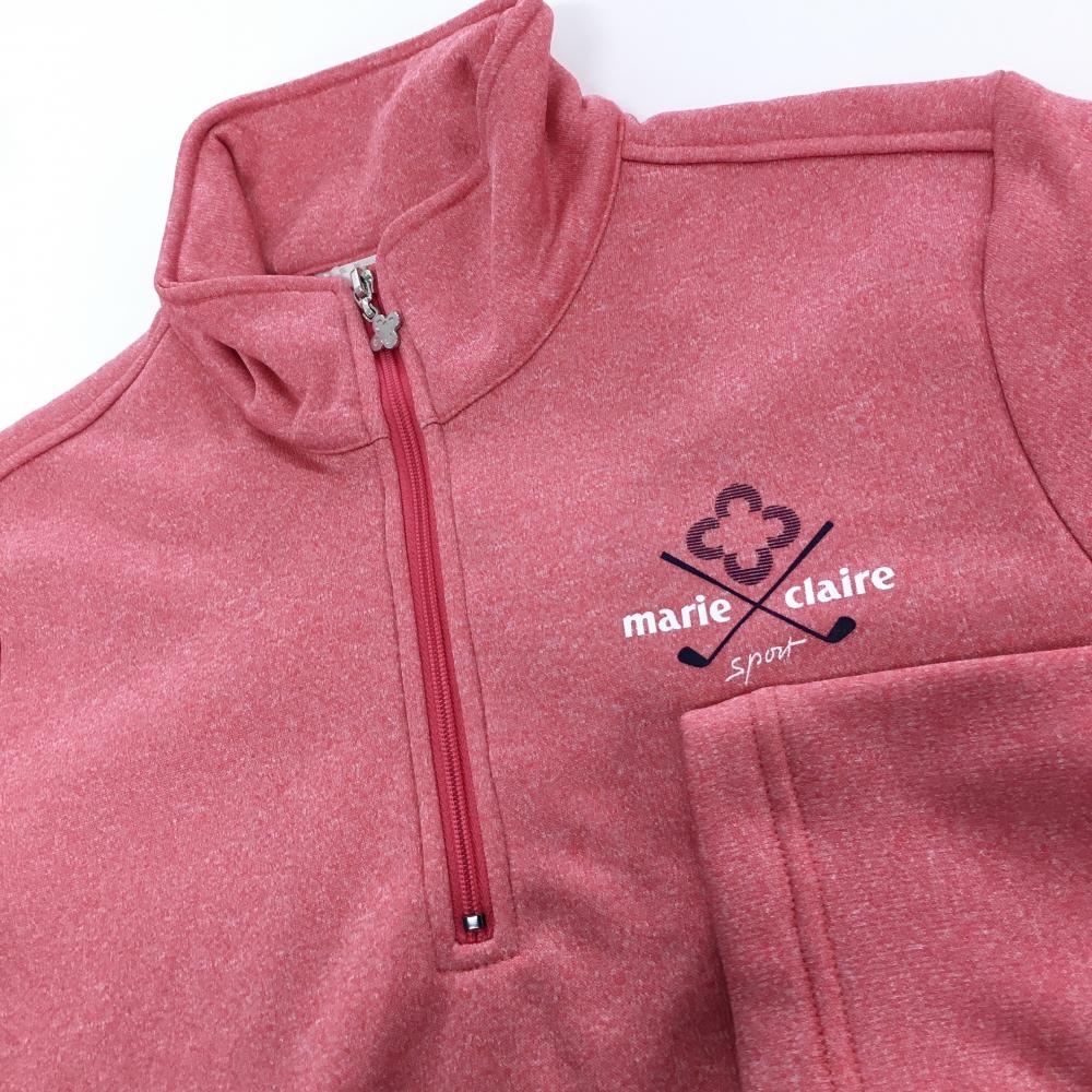 【超美品】マリクレールスポール 長袖ハイネックシャツ 杢レッドピンク 裏起毛 ハーフジップ レディース L ゴルフウェア marie claire
