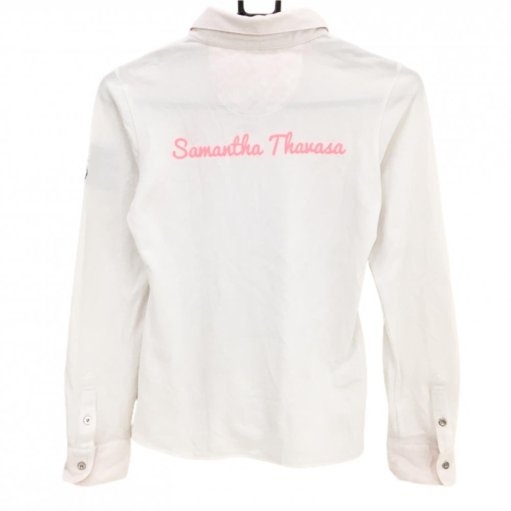 【美品】サマンサタバサUNDER25 長袖シャツ 白×ピンク ベア刺しゅう レディース M ゴルフウェア Samantha Thavasa