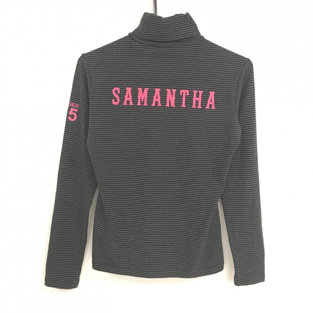 【美品】サマンサタバサUNDER25 長袖タートルネックシャツ ダークグレー×黒 ボーダー レディース M ゴルフウェア Samantha Thavasa