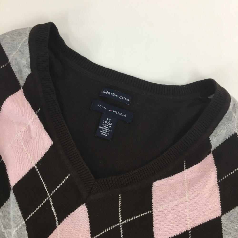 トミーヒルフィガー セーター ダークブラウン×ピンク アーガイル柄 レディース XS ゴルフウェア Tommy Hilfiger Golf