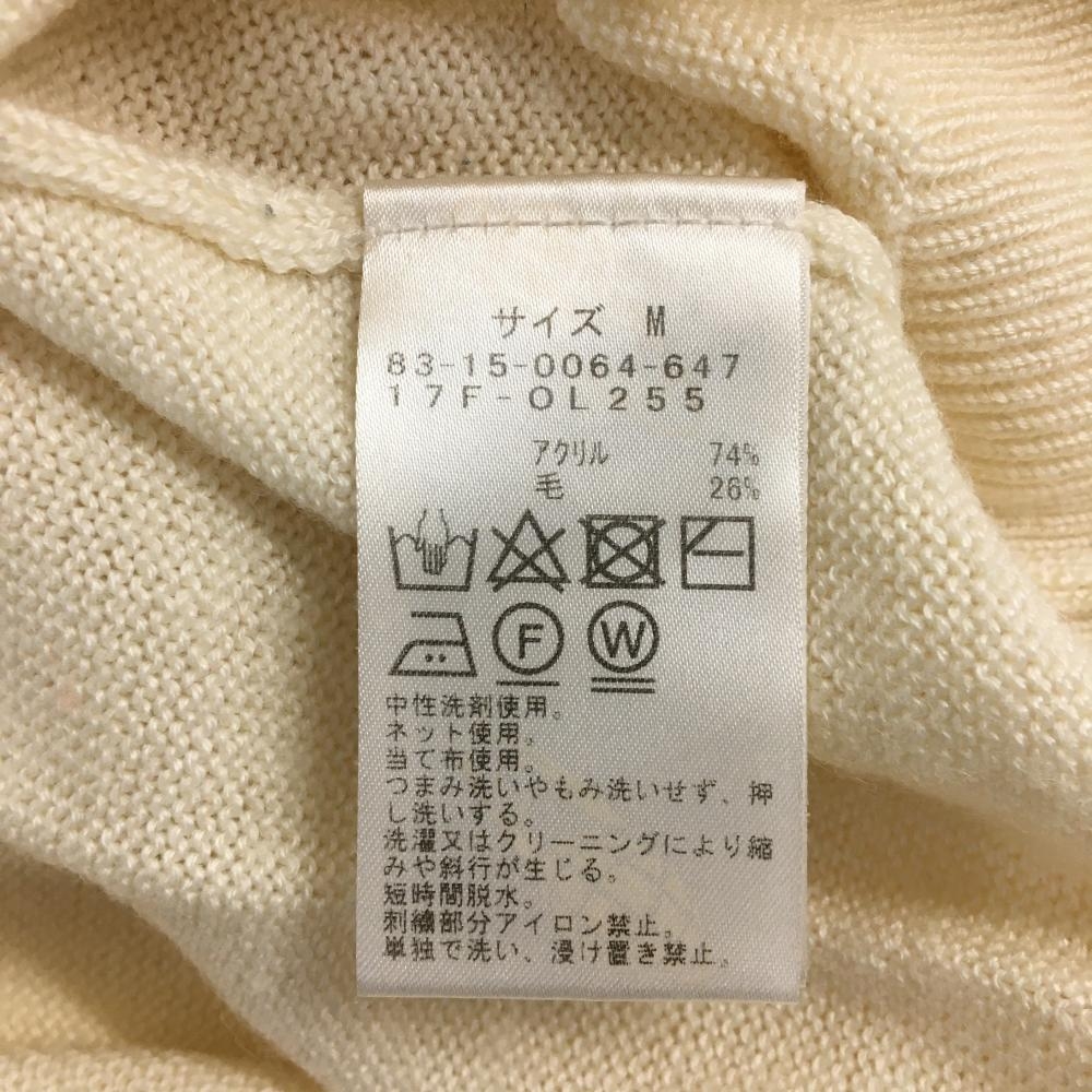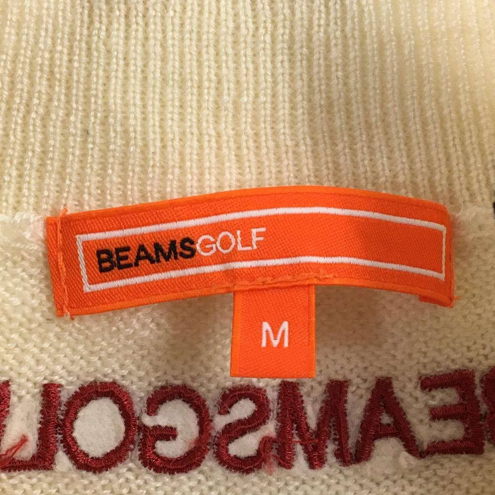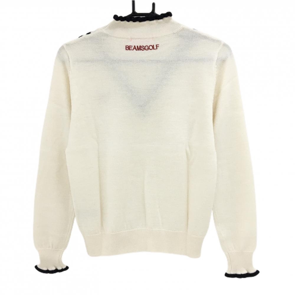 【美品】ビームスゴルフ ハイネックセーター 白×ネイビー ロゴレッド ウール混 ニット レディース M ゴルフウェア BEAMS GOLF
