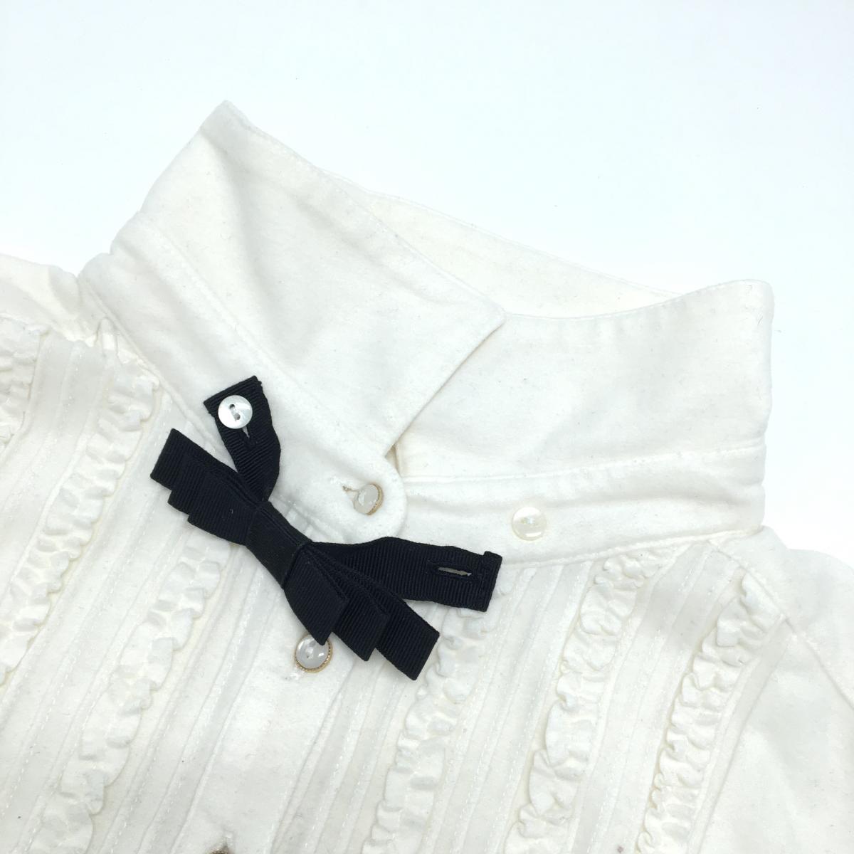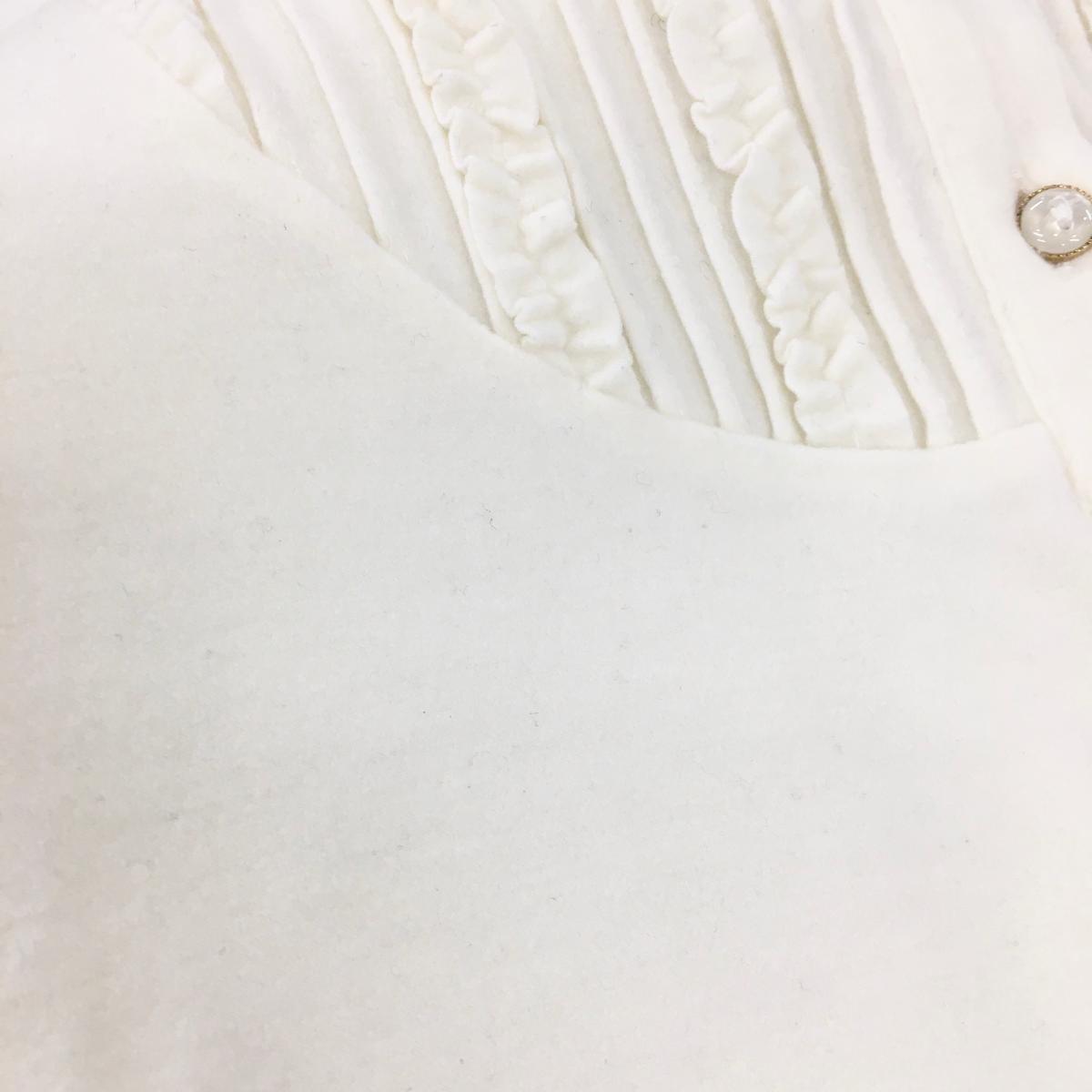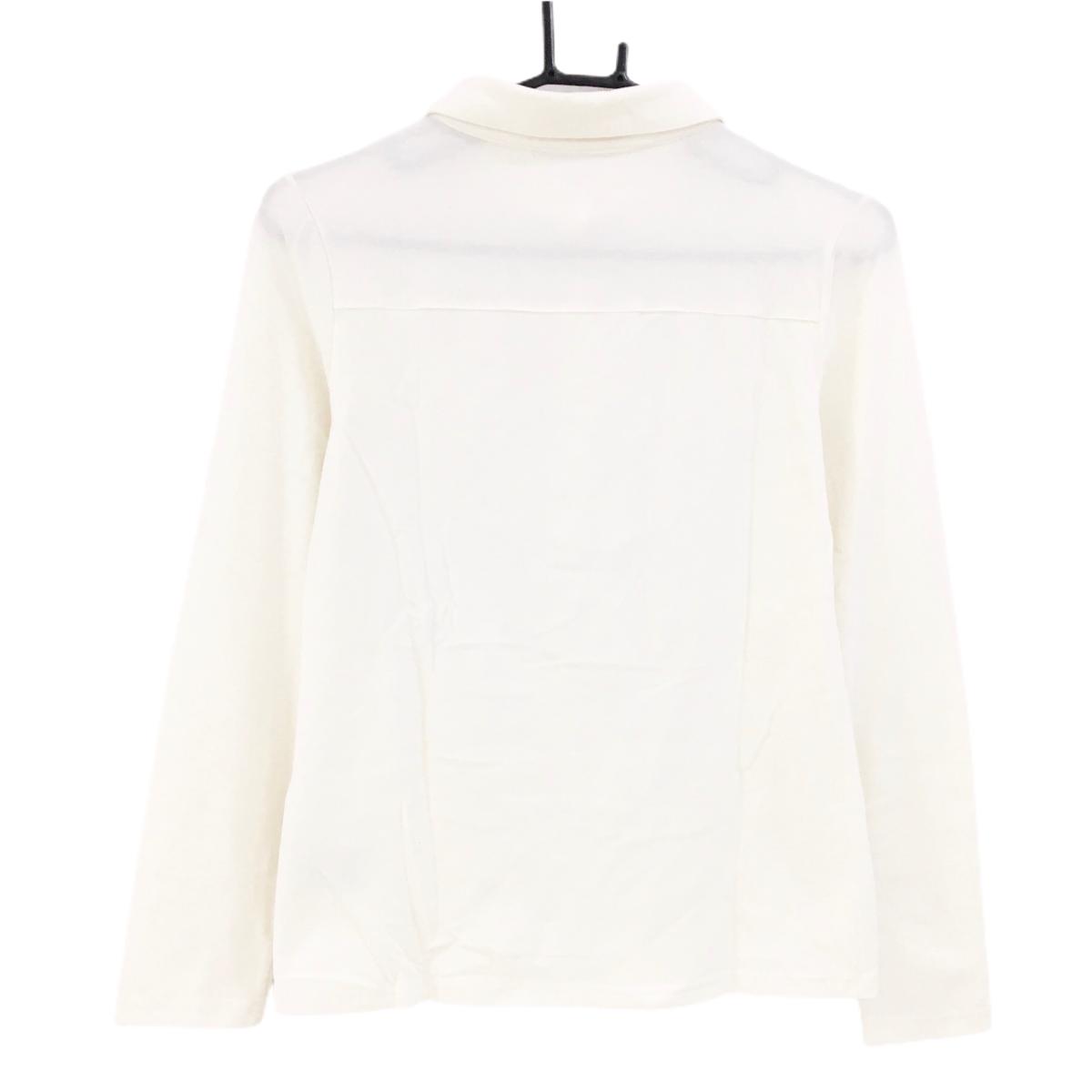 【美品】ジュンアンドロペ 長袖ポロシャツ 白 前立て付近フリル レディース M ゴルフウェア JUN&ROPE