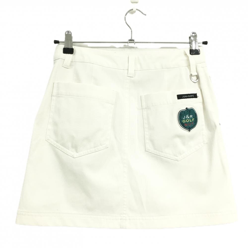 【美品】ジュンアンドロペ スカート 白 ワッペン ストレッチ レディース S ゴルフウェア JUN&ROPE