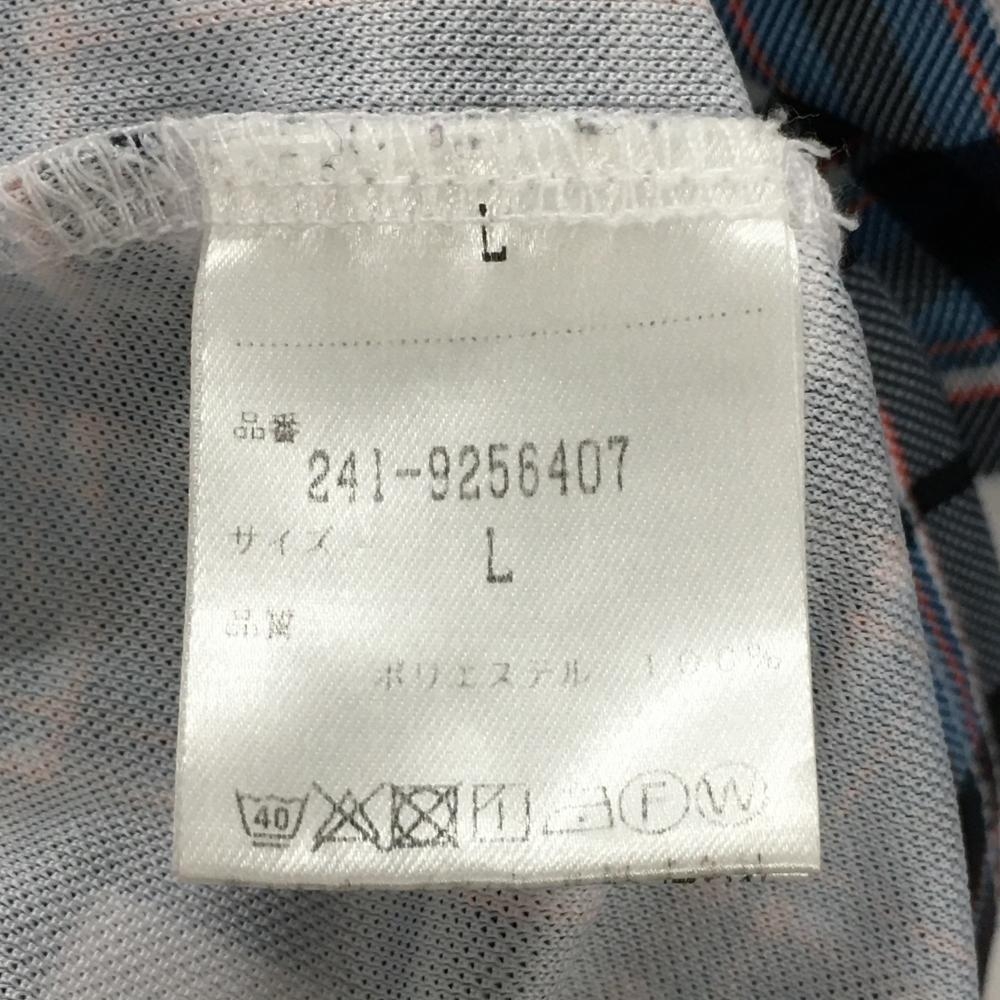 キャロウェイ 長袖ポロシャツ 白×ブルー チェック柄 ロゴ刺しゅう メンズ L ゴルフウェア Callaway