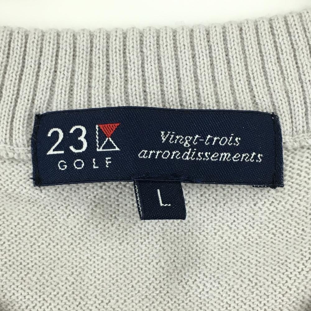【美品】23区ゴルフ セーター ライトグレー系×白 ボーダー ウール混 ニット Vネック メンズ L ゴルフウェア 23区