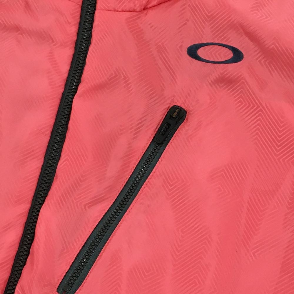 【超美品】オークリー 中綿ベスト ピンク×レッドピンク 総柄地模様 ロゴ刺しゅう メンズ 2XL ゴルフウェア 大きいサイズ Oakley
