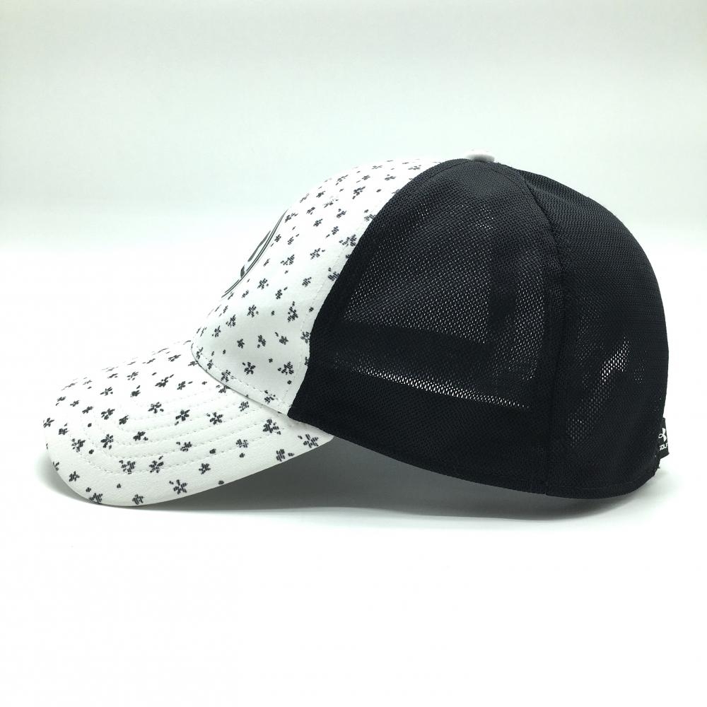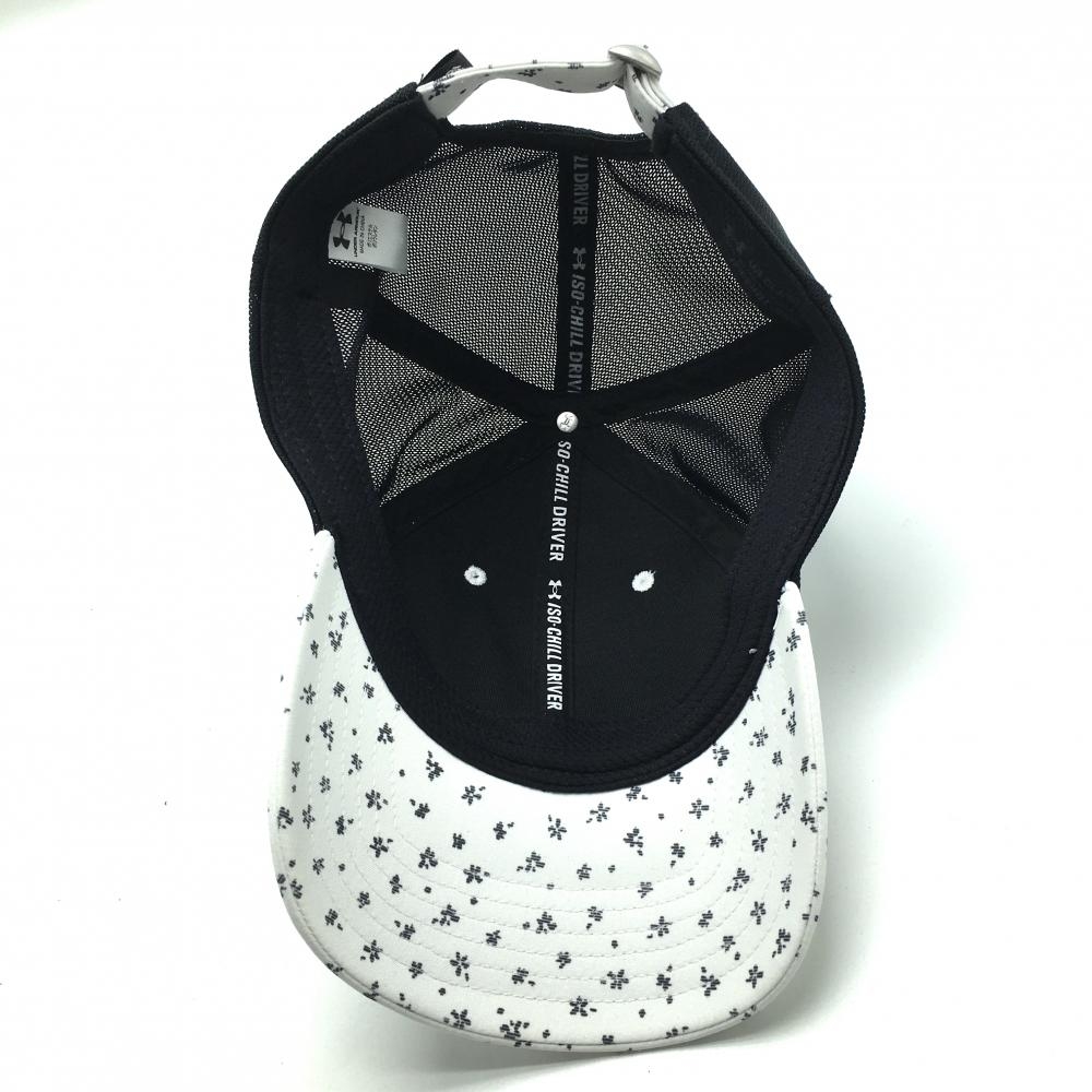 【超美品】アンダーアーマー メッシュキャップ 白×黒 花柄 フロントロゴ ゴルフウェア UNDER ARMOUR