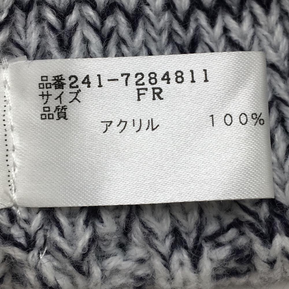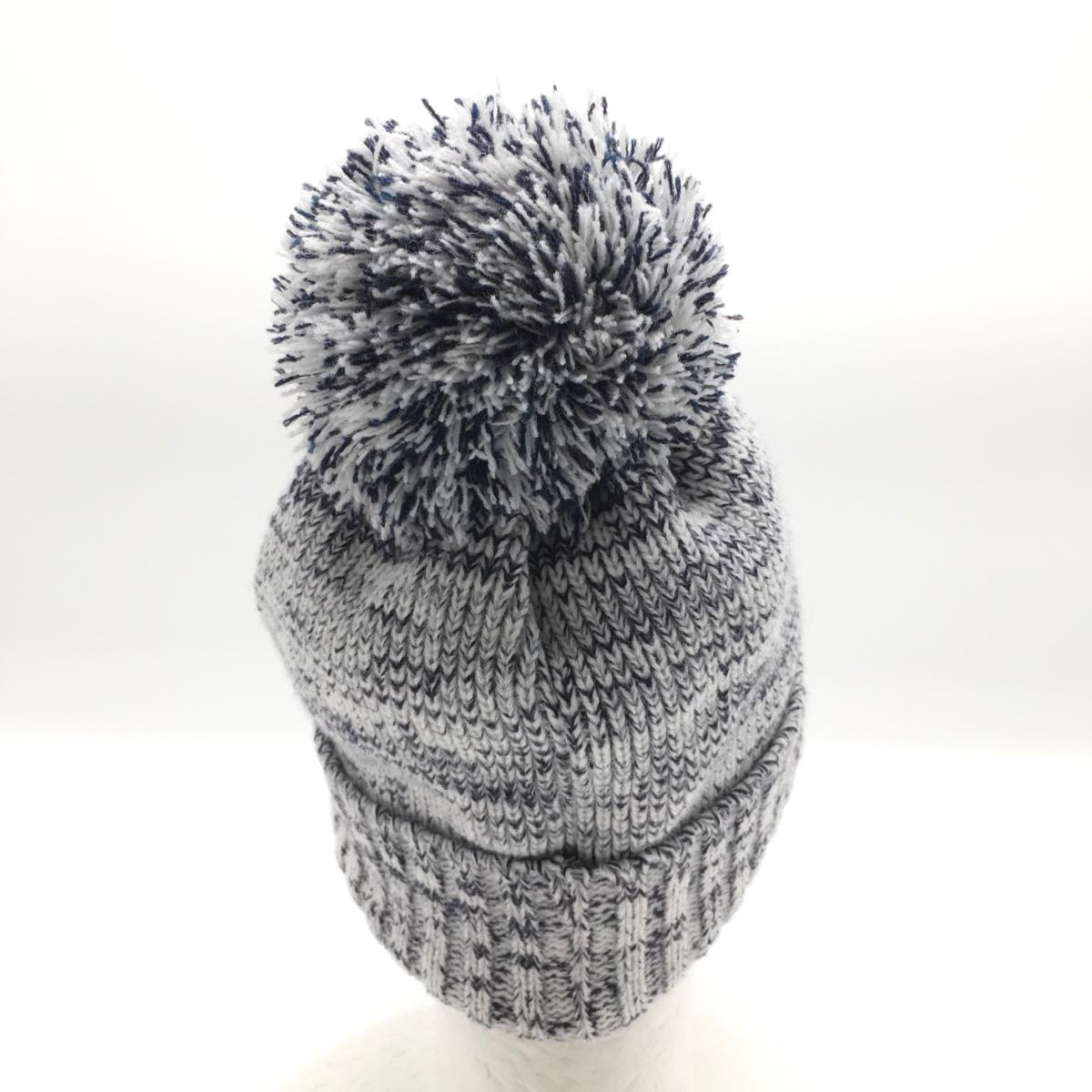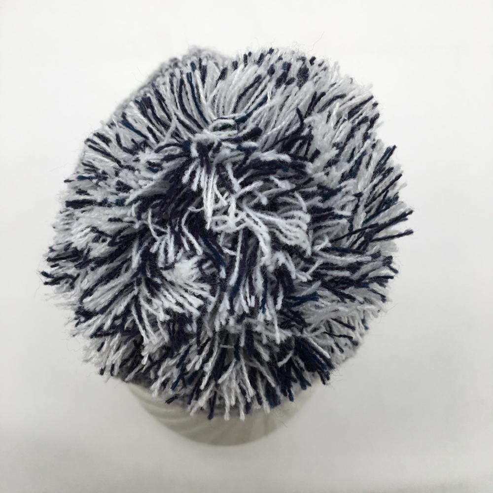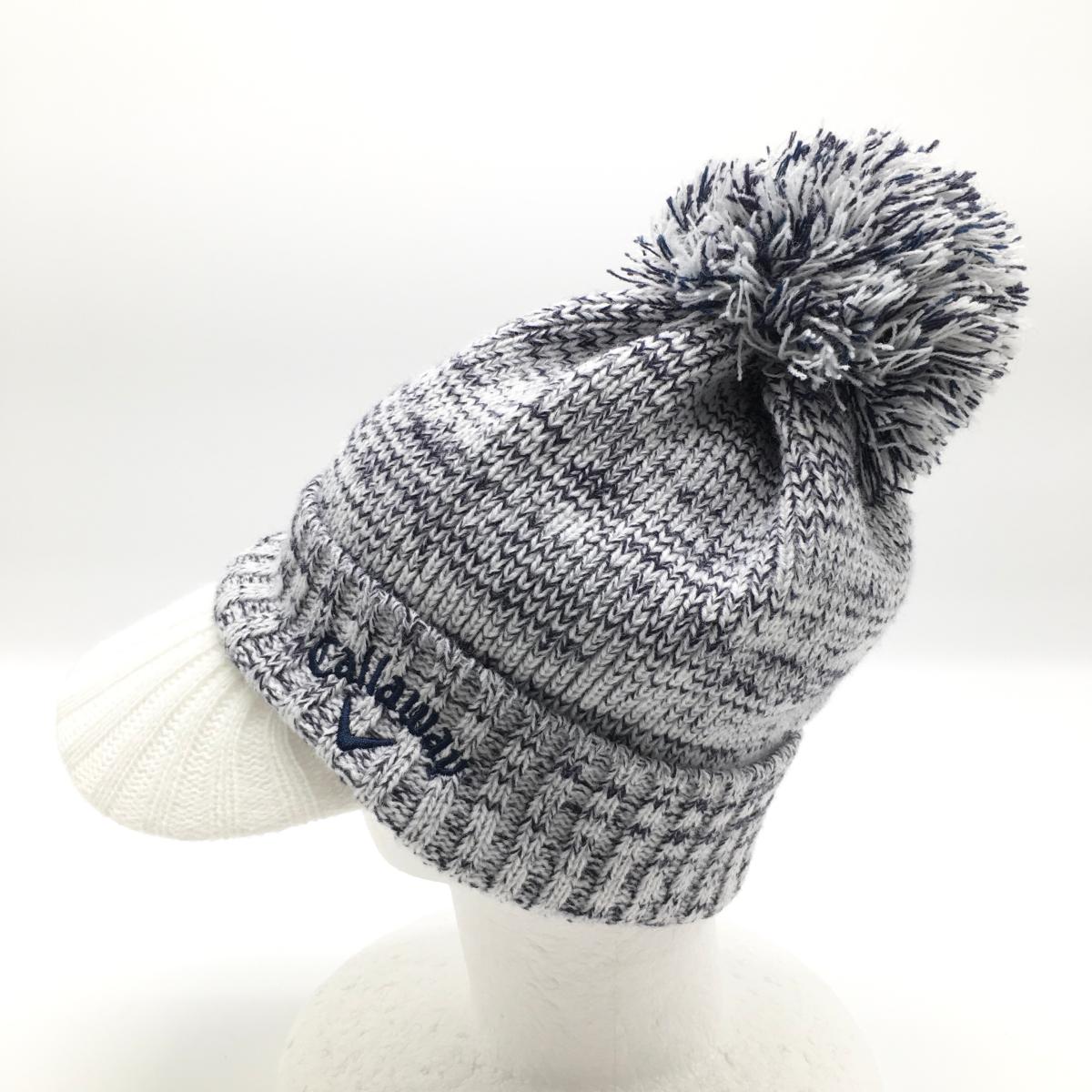 【美品】キャロウェイ つば付きニット帽 白×ネイビー ボンボン付 ロゴ刺しゅう FR ゴルフウェア Callaway