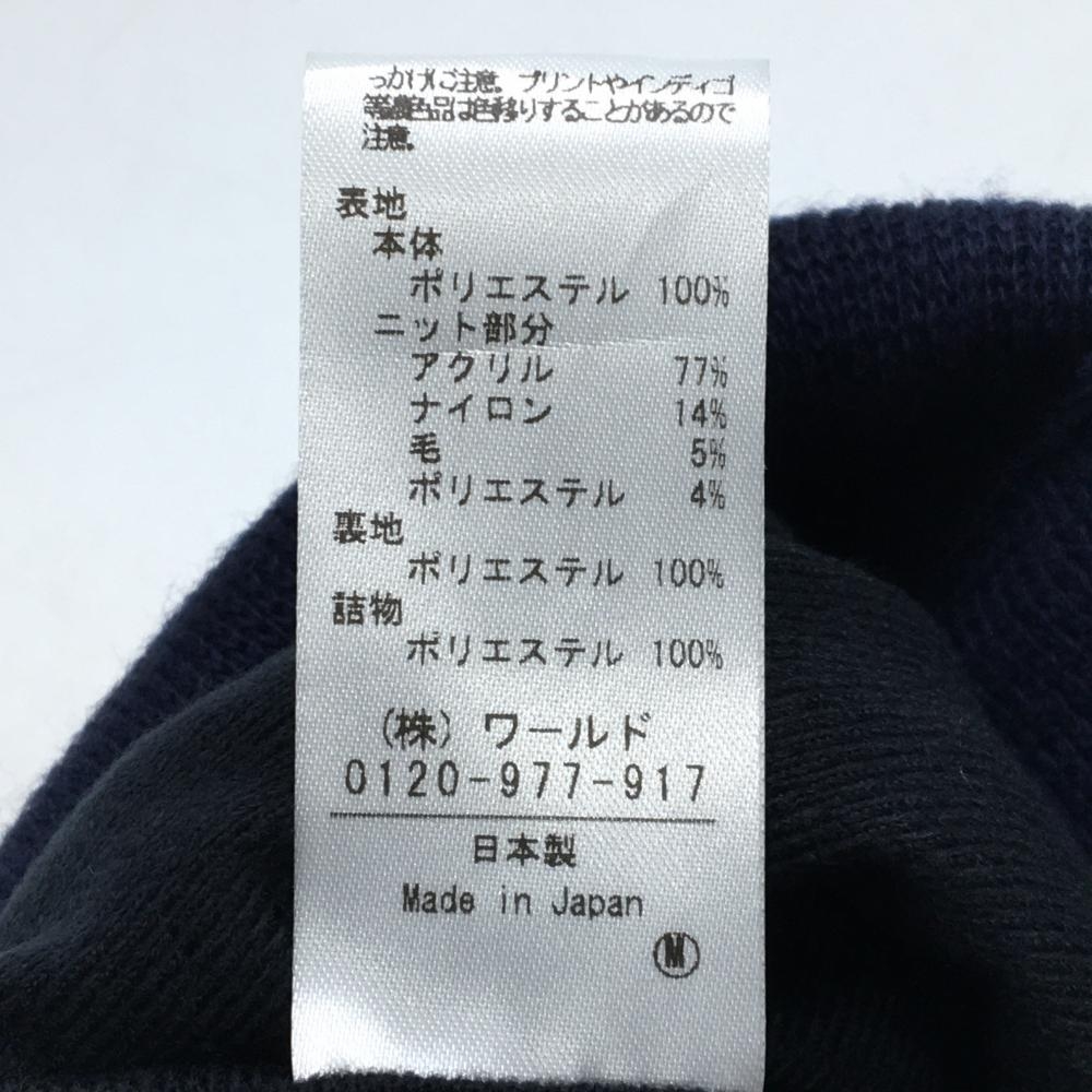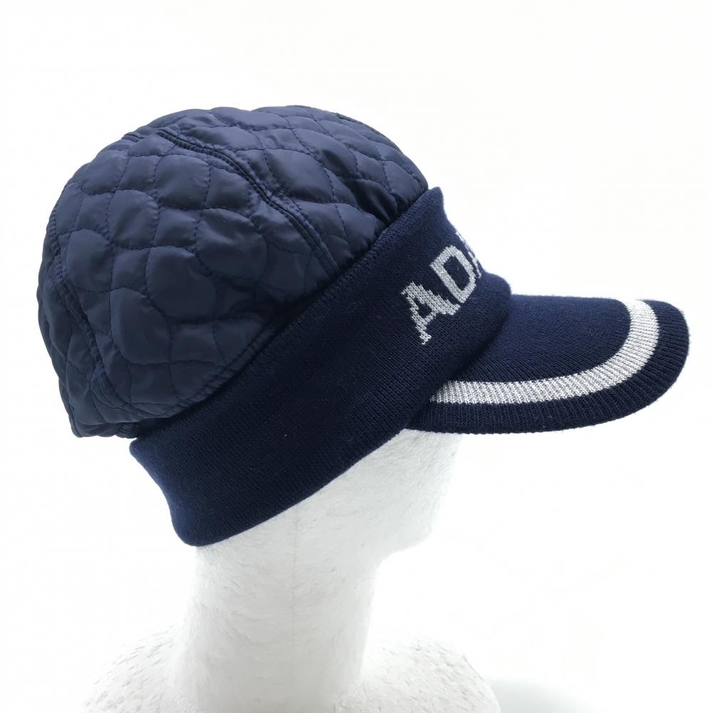 【超美品】アダバット つば付きニット帽 ネイビー×シルバー系 一部中綿 フロントロゴ ゴルフウェア adabat