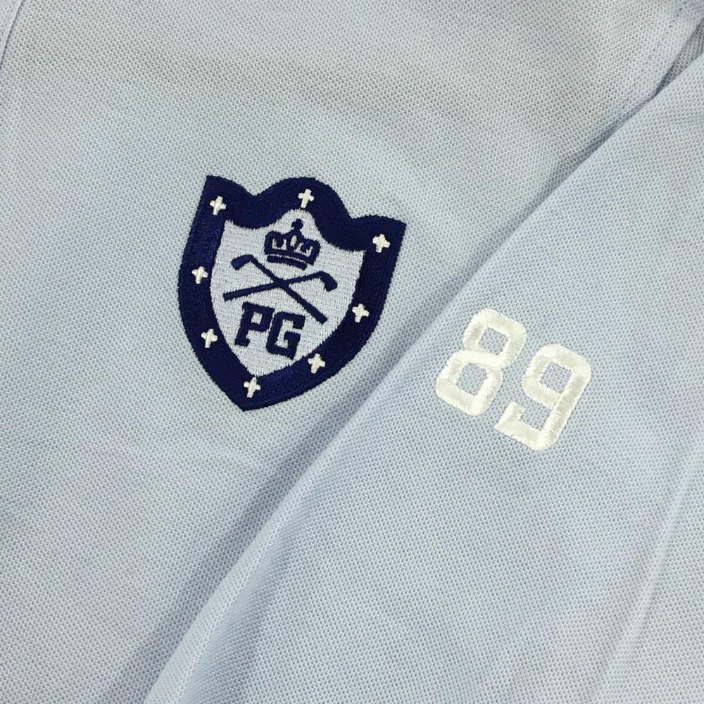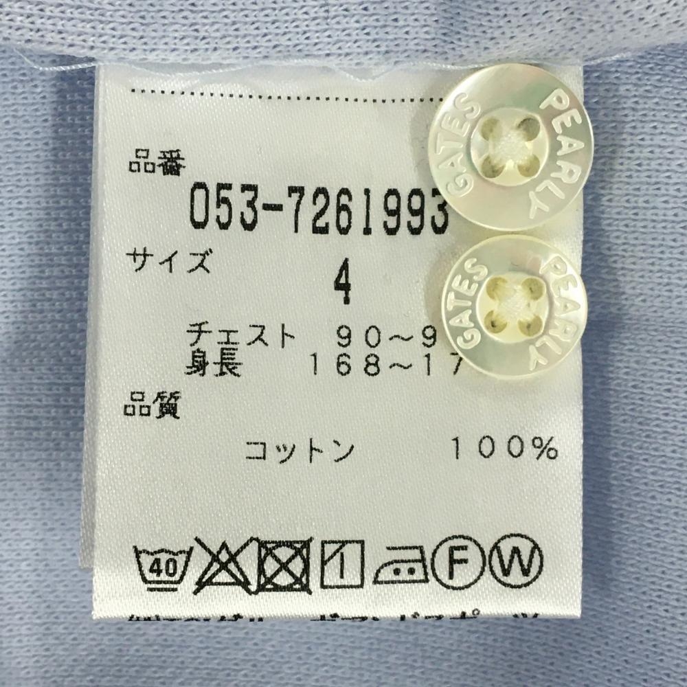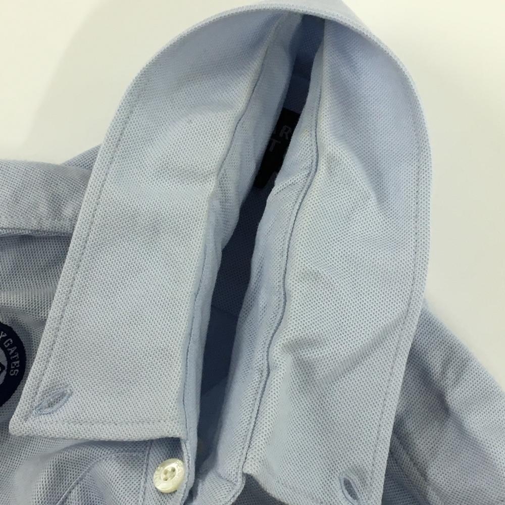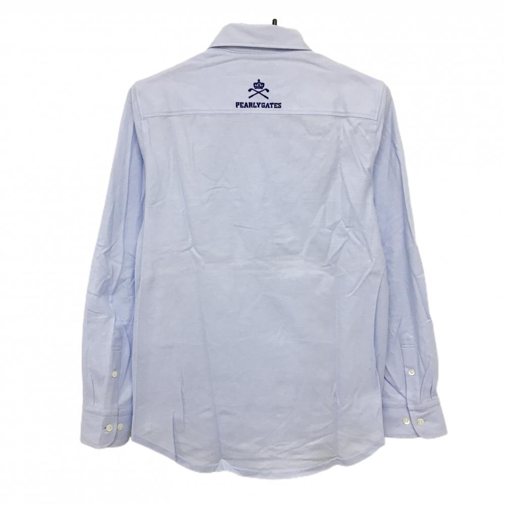 パーリーゲイツ 長袖ポロシャツ ライトブルー×ネイビー 胸ロゴ ボタンダウン メンズ 4(M) ゴルフウェア PEARLY GATES